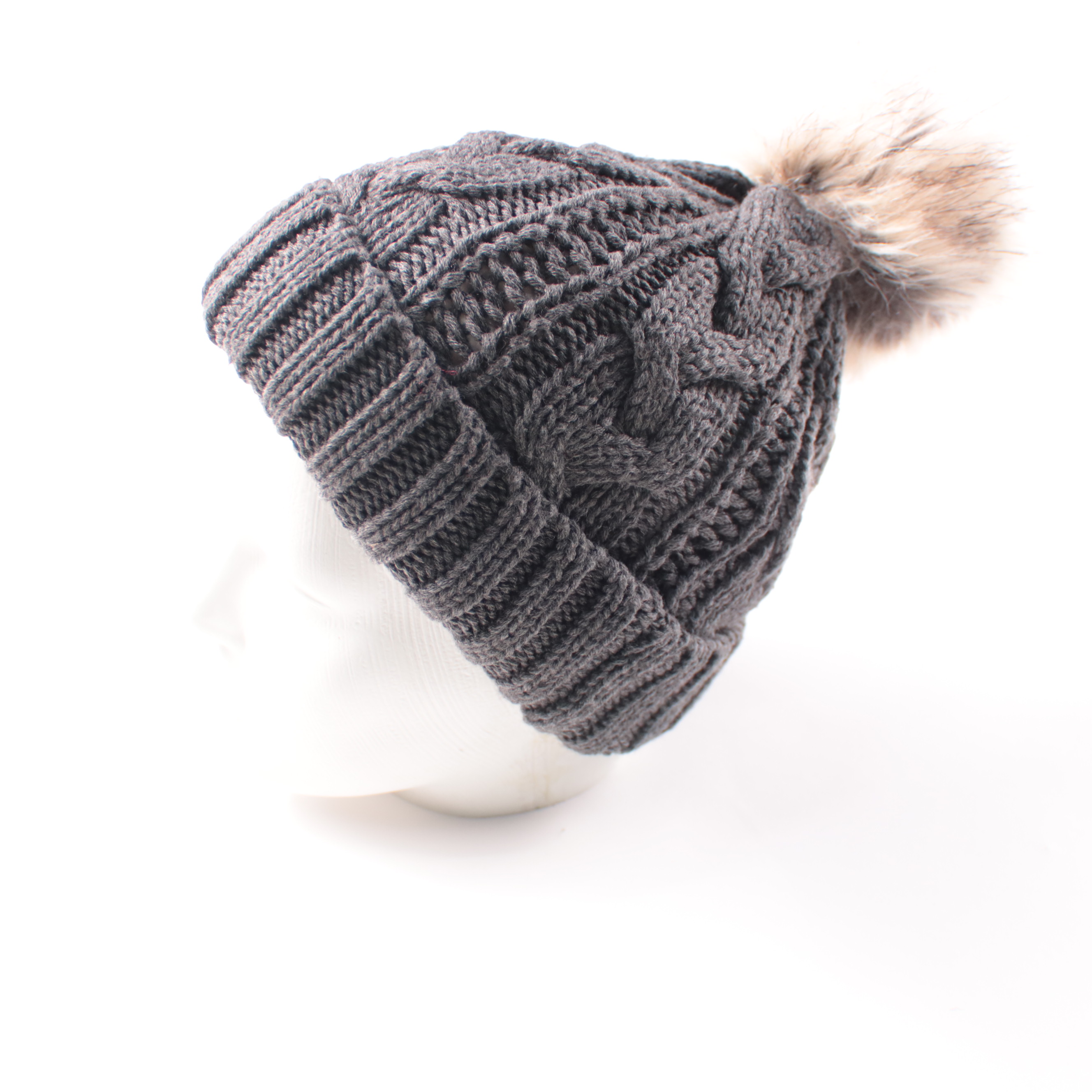 Вязаная шапка Stitch & Pieces серого цвета с объёмным узором «косы» и помпоном. Подойдёт для зимних прогулок и повседневных образов, хорошо сочетается с пуховиком или пальто. Плотная вязка помогает сохранять тепло и комфортно сидит на голове.