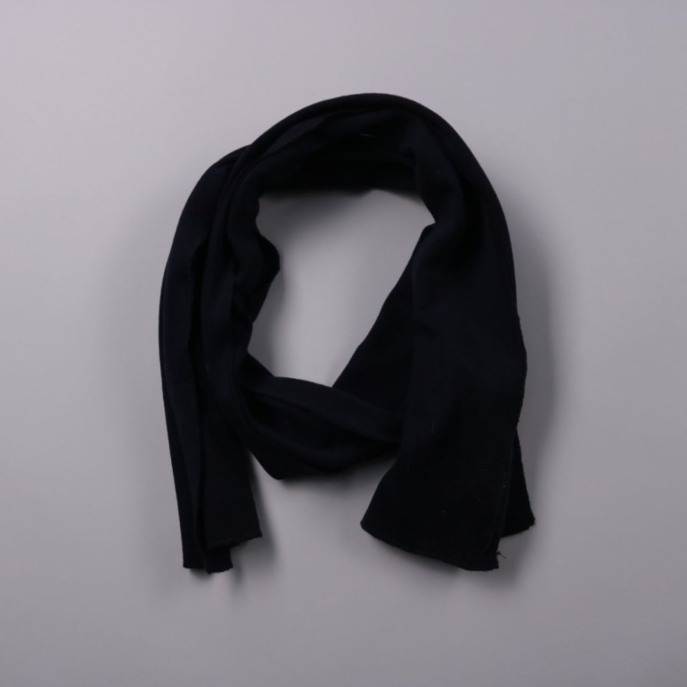 Чёрный шарф без указания бренда, лёгкий и лаконичный по дизайну. Подойдёт на каждый день и легко сочетается с верхней одеждой и базовыми образами. Практичный вариант: компактно складывается и удобно носить с собой.