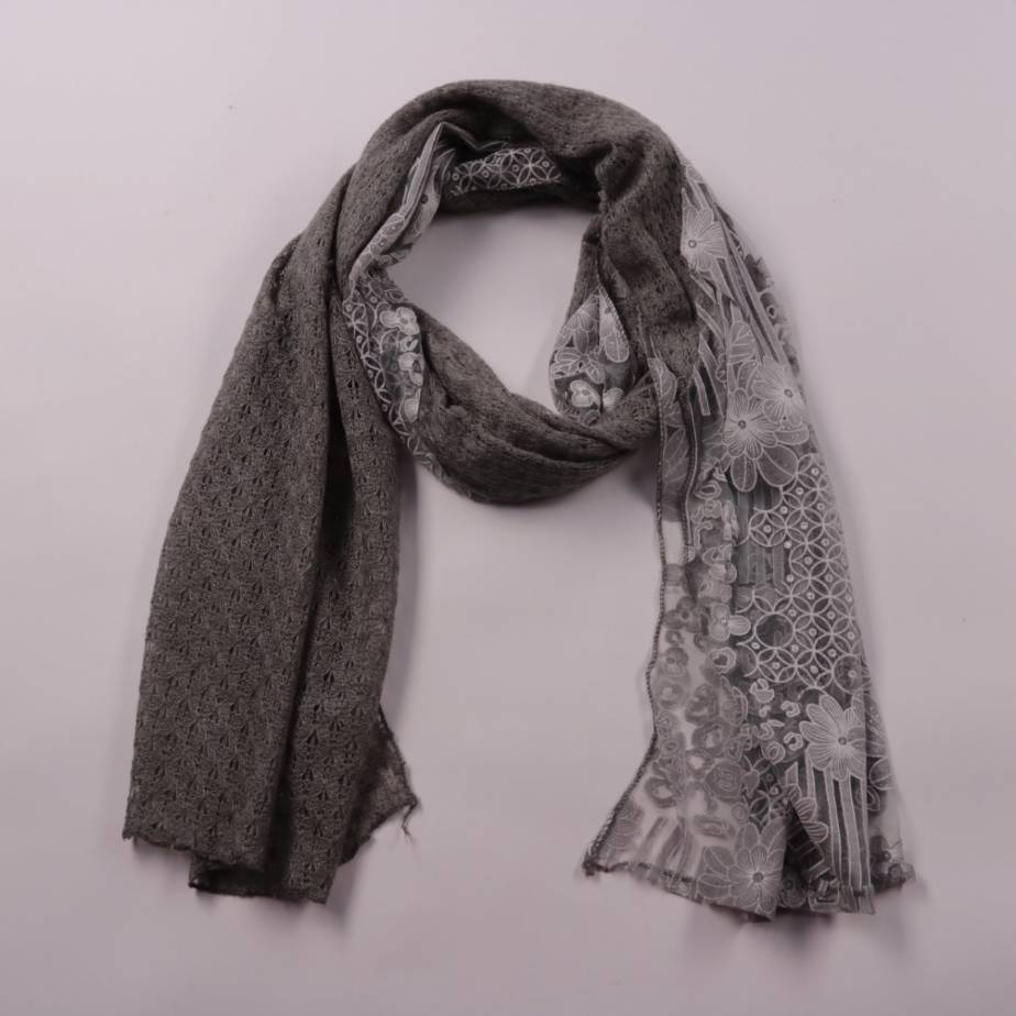 Шарф Lishangge серого цвета с сочетанием ажурной фактуры и принта с цветочным орнаментом. Подойдёт для демисезона и прохладных летних вечеров, можно носить как шарф или лёгкий палантин. Практичный плюс — легко складывается и не занимает много места в с...