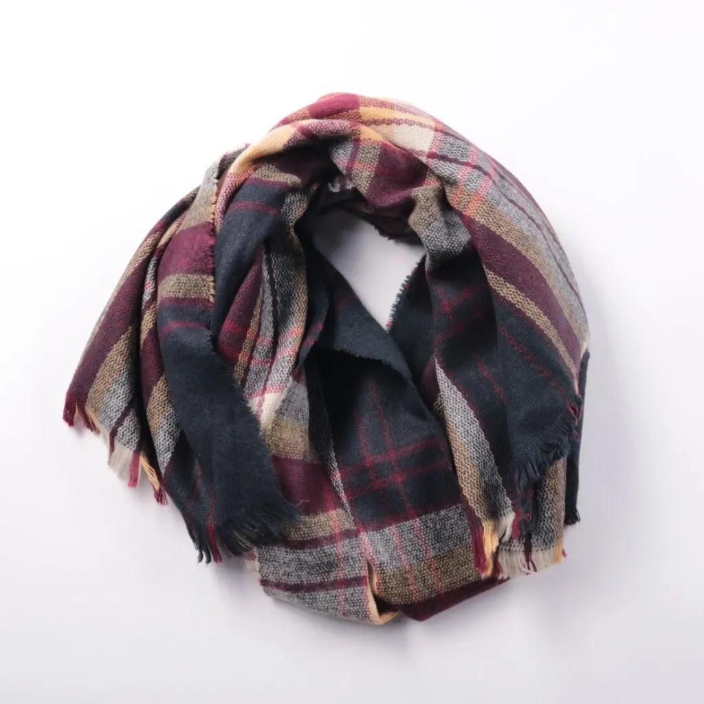 Шарф в клетку с бахромой по краю, без указания бренда. Подойдёт для осенне-весенних образов и прохладных дней, можно носить как классический шарф или накинуть как небольшой палантин. Плотное плетение хорошо сохраняет тепло и легко сочетается с базовой ...
