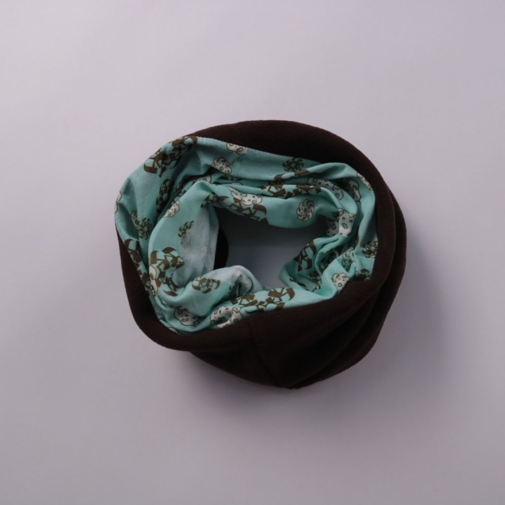 Снуд (бафф) Crane Sports из мягкого флиса и принтованного полиэстера в коричнево-бирюзовой гамме. Подойдёт для прогулок и спорта в прохладную погоду, закрывает шею и может использоваться как шарф-труба. Лёгкий в уходе и быстро сохнет.