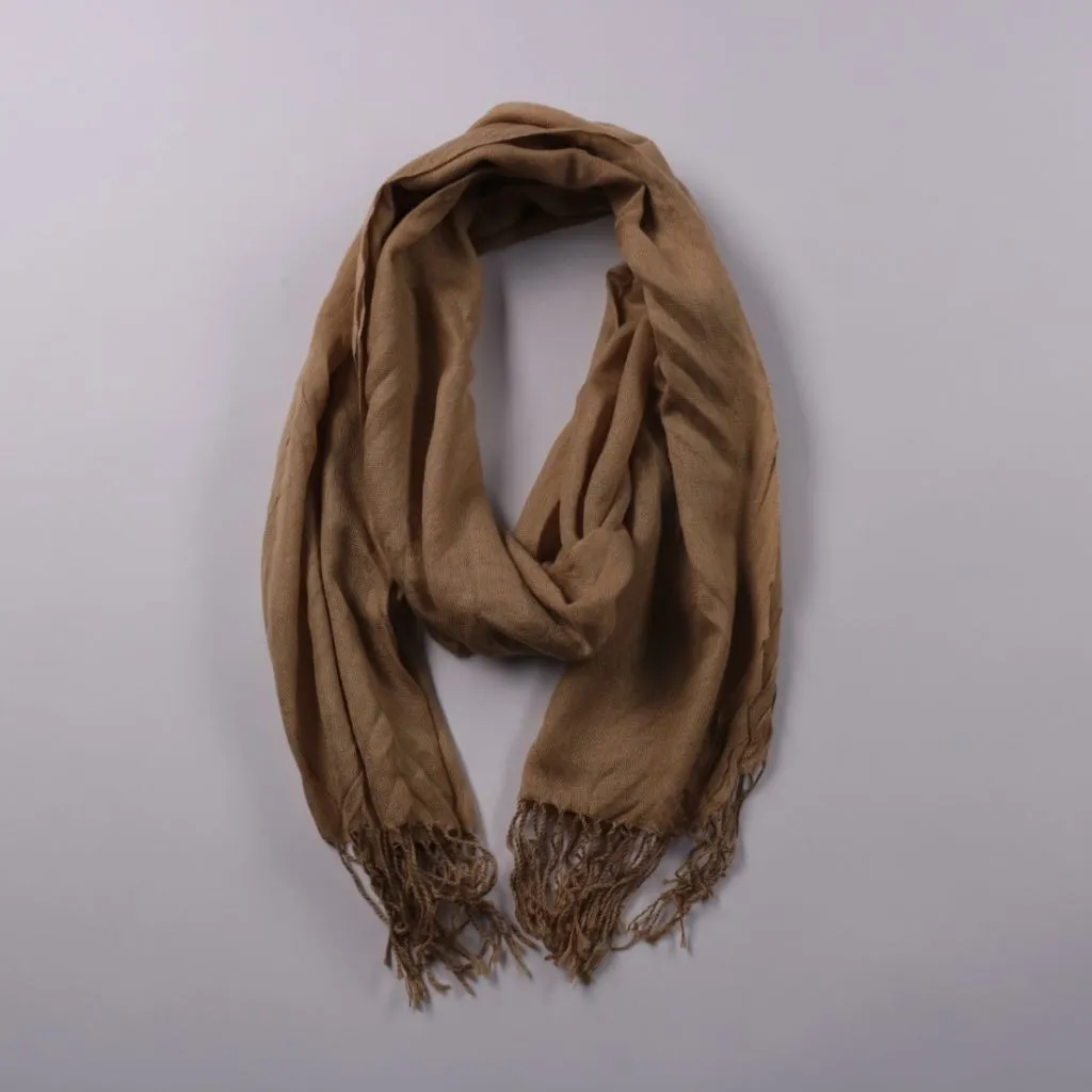 Шарф Dunnes в оттенке taupe с фактурным плетением и бахромой по краям. Подойдёт для прохладной погоды осенью и зимой, хорошо сочетается с базовыми пальто и куртками. Акриловая пряжа лёгкая и быстро сохнет после стирки.