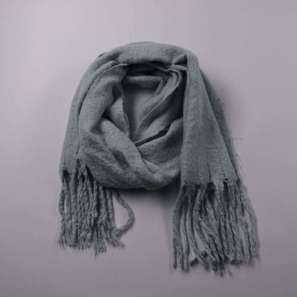 Тёплый шарф с бахромой, мягкой фактурной вязки, без видимых логотипов. Подойдёт для повседневной носки зимой и в прохладную погоду, легко сочетается с верхней одеждой. За счёт объёма хорошо закрывает шею и защищает от ветра.