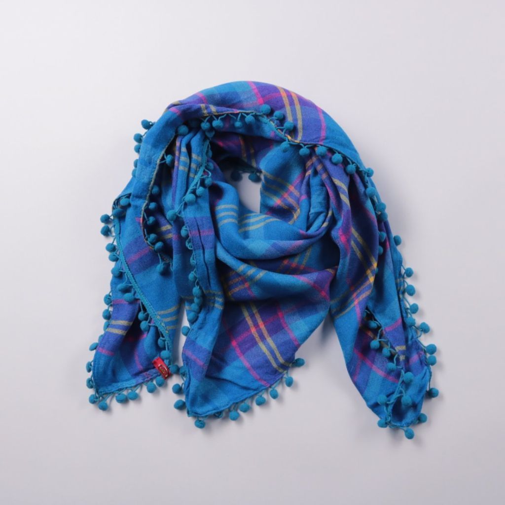 Шарф Etro в клетку, выполнен в насыщенном синем цвете и украшен по краю помпонами. Подойдёт для повседневных образов и поездок в прохладную погоду, можно носить как шарф или платок. Мягкая ткань легко драпируется и добавляет акцент за счёт декоративной...