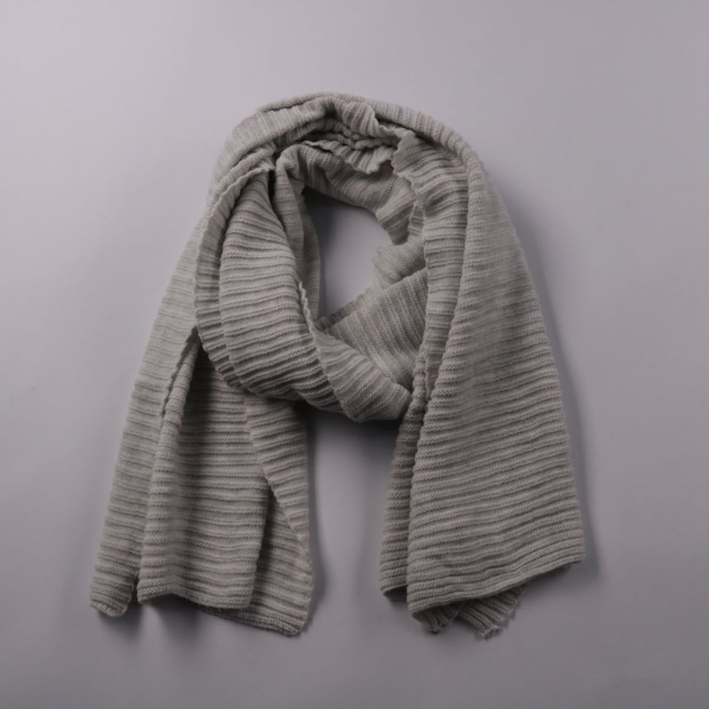 Вязаный шарф в сером цвете с фактурой в рубчик. Подойдёт для повседневных образов в прохладную погоду и легко сочетается с верхней одеждой. Мягко драпируется и удобно наматывается в несколько оборотов.