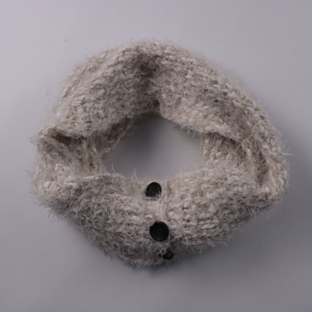 Вязаный снуд Simply Noelle бежевого цвета с фактурной пряжей и застёжкой на пуговицы. Подойдёт для зимних прогулок и повседневных образов, когда хочется добавить тепла у шеи. Пуговицы позволяют регулировать посадку и удобно снимать/надевать аксессуар.