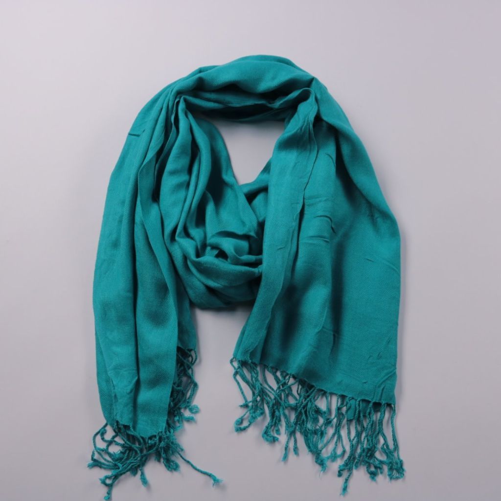 Лёгкий шарф с кисточками, однотонный в бирюзово-голубом цвете. Подойдёт для повседневных образов и для прохладных вечеров в тёплый сезон. Удобно драпируется и компактно складывается в сумку.