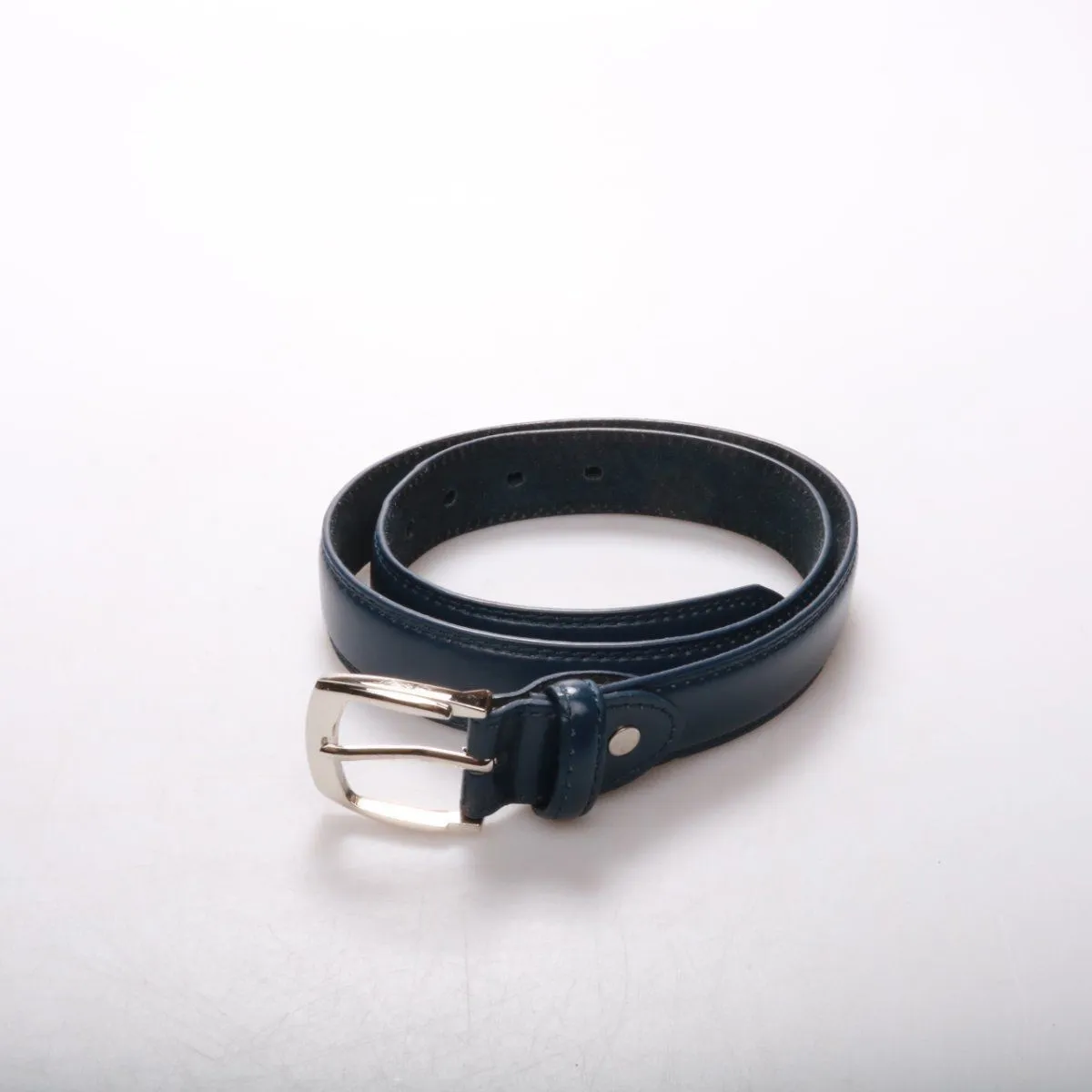 Кожаный ремень Ossi тёмно-синего цвета с классической металлической пряжкой. Подойдёт для повседневной носки с джинсами или брюками, размер детский XS (26–30 / 66–76 см). Прочная кожа хорошо держит форму и аккуратно фиксируется по талии.