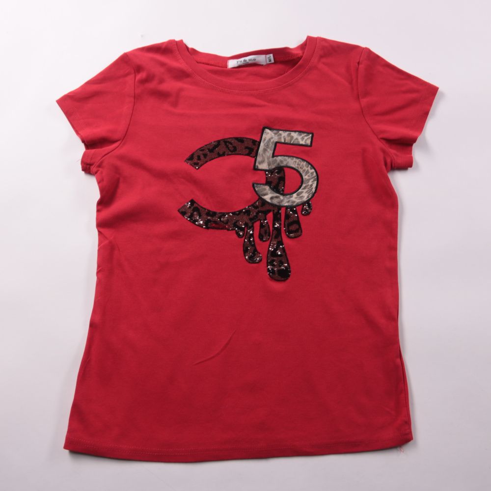 Красная футболка Yu & me с коротким рукавом и крупным принтом «C5» спереди. Подойдёт для повседневной носки в садик или школу, а также для прогулок. Трикотаж тянется и комфортно садится по фигуре благодаря добавлению эластана.