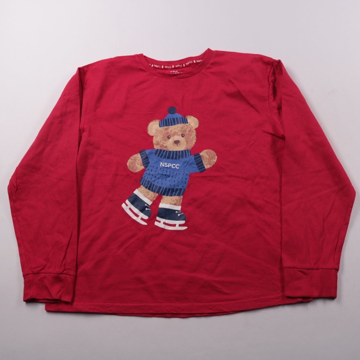 Детская футболка с длинным рукавом NSPCC красного цвета с принтом мишки спереди. Подойдёт для прогулок, школы или дома в прохладную погоду. Хлопковая ткань хорошо дышит и комфортна в носке.