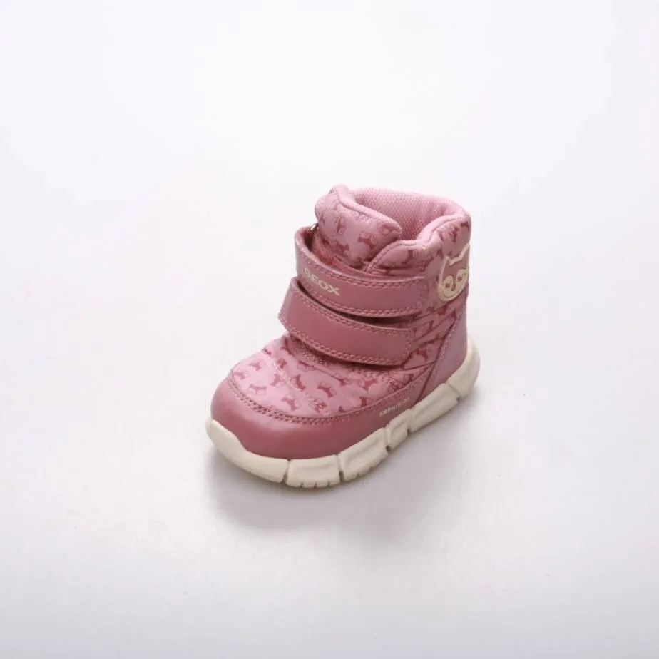 Детские ботинки Geox в розовом цвете с принтом и застёжками на липучках. Подойдут для прогулок в прохладную погоду, легко надевать и регулировать по ножке. Гибкая подошва с рельефом помогает увереннее ходить на улице.