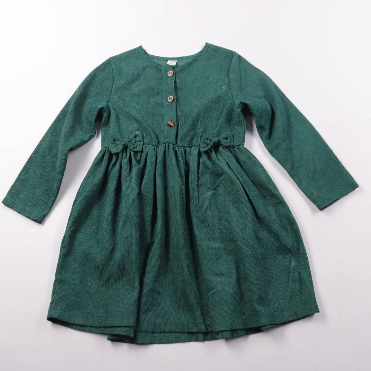 Платье Shein для девочки из фактурного трикотажа под вельвет, с длинным рукавом и застёжкой на пуговицы спереди. Подойдёт для садика, прогулок и праздников в прохладную погоду, благодаря свободной юбке не сковывает движения. Ткань с эластаном тянется и меньше мнётся.