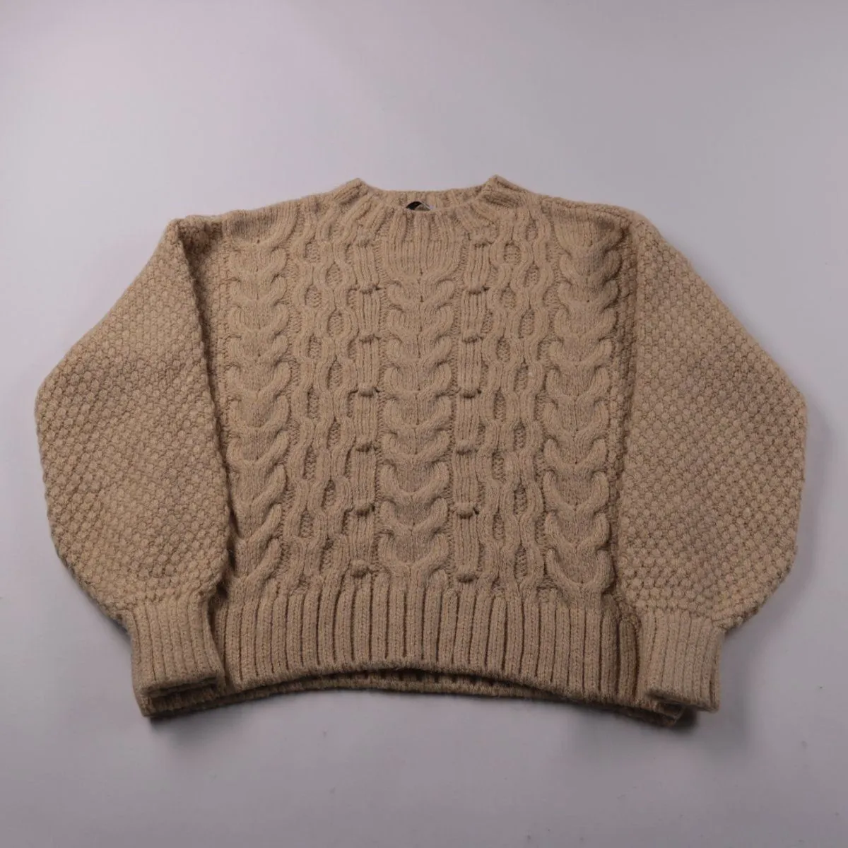 Вязаный свитер George бежевого цвета с узором «косы» спереди и фактурной вязкой на рукавах и спинке. Подойдёт для школы, прогулок и повседневной носки в прохладную погоду. Плотная вязка помогает лучше сохранять тепло.