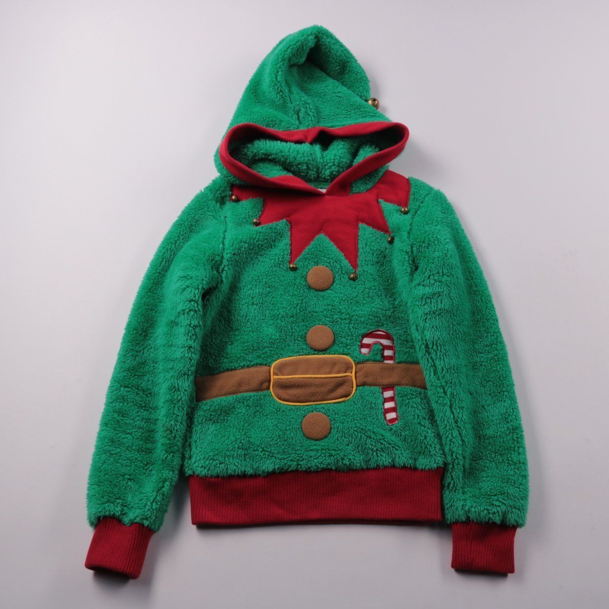 Детская флисовая толстовка Primark с капюшоном, выполнена в новогоднем стиле «эльф» с декоративным поясом и леденцом. Подойдёт для прогулок и тематических праздников в прохладную погоду. Мягкий флис хорошо сохраняет тепло и быстро сохнет после стирки.
