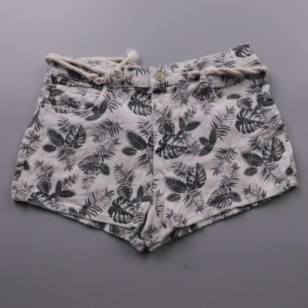 Шорты Zara Kids белого цвета с чёрным тропическим принтом и шнурком на поясе. Подойдут для прогулок и отдыха в тёплую погоду. Лёгкий материал и регулируемая посадка делают их удобными в носке.