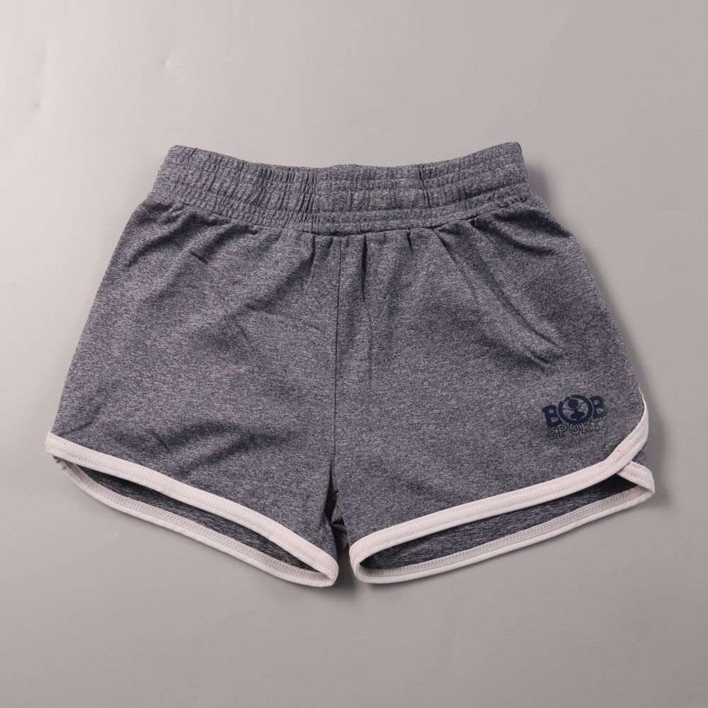 Спортивные шорты Bob серого меланжевого цвета с эластичным поясом и белой окантовкой по краю. Подойдут для прогулок, спорта и активных игр в тёплую погоду. Лёгкий синтетический материал со стрейчем быстро сохнет и не стесняет движений.