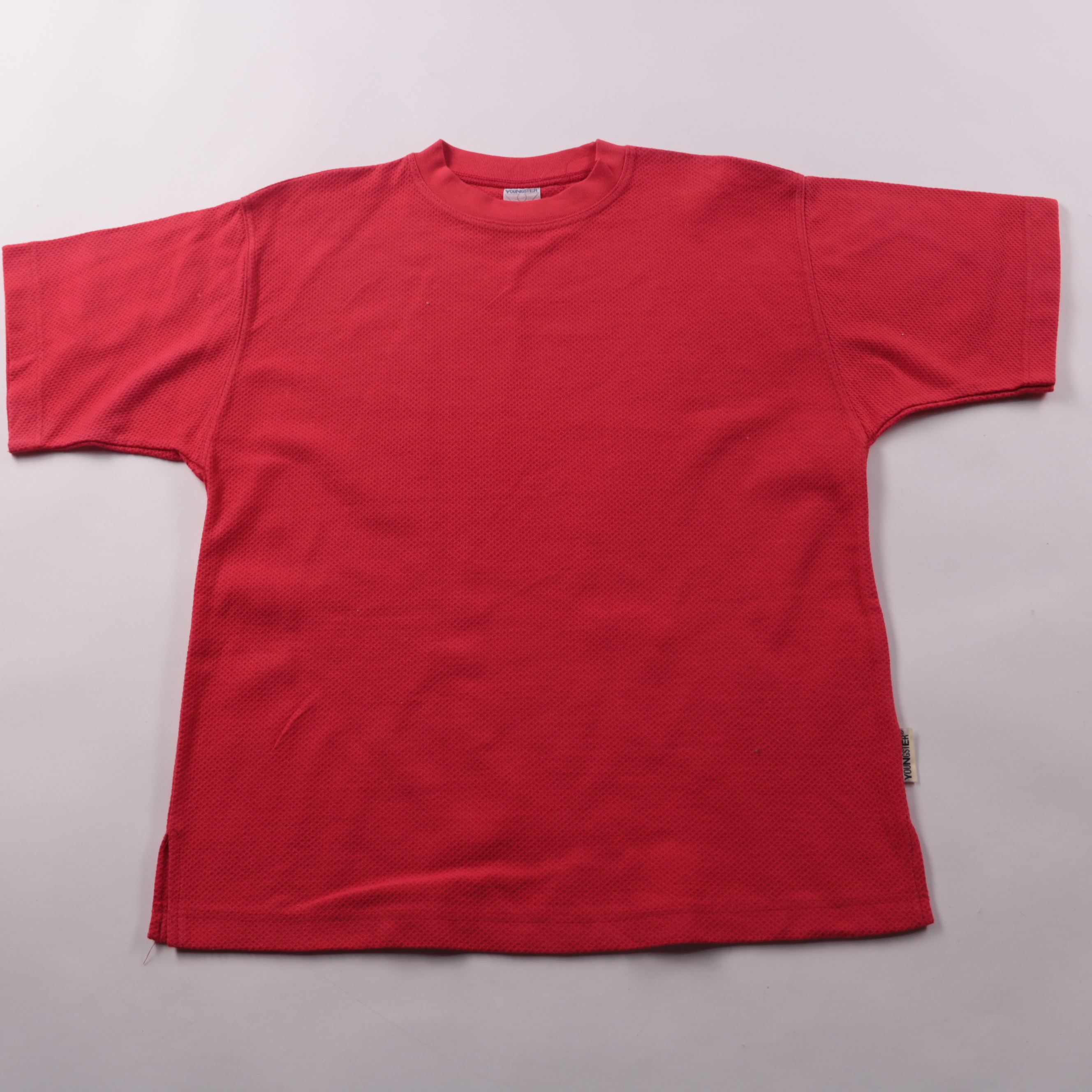 Футболка Youngster красного цвета из 100% хлопка, лёгкая и дышащая за счёт фактурной ткани. Подойдёт для школы, прогулок и занятий спортом в тёплую погоду или как базовый слой круглый год. Хлопок хорошо впитывает влагу и комфортен в носке.