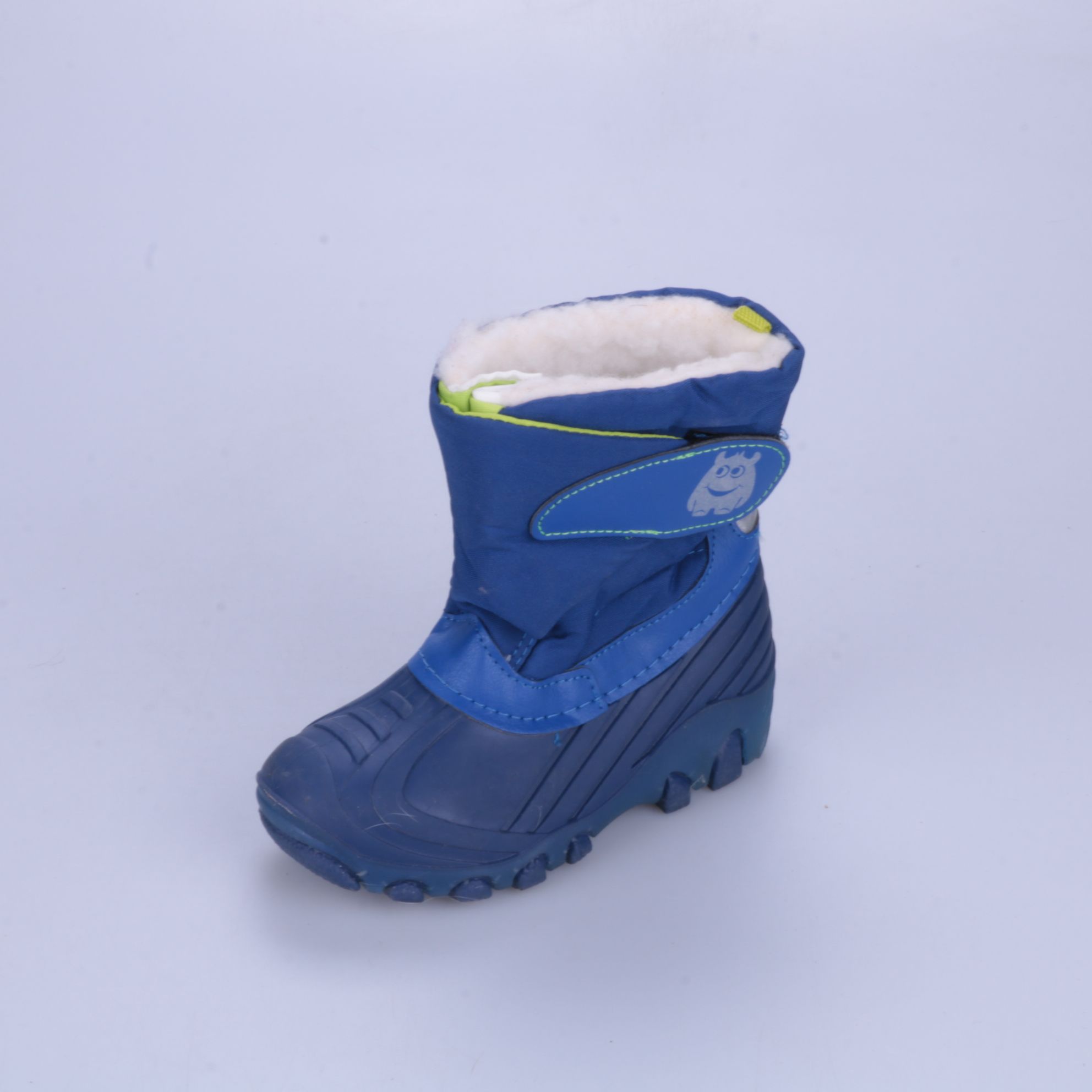 Детские зимние сапоги для мальчика в синем цвете с тёплой светлой подкладкой и застёжкой на липучке. Подойдут для прогулок в холодную погоду и активных игр на улице. Рельефная подошва даёт хорошее сцепление и помогает меньше скользить.