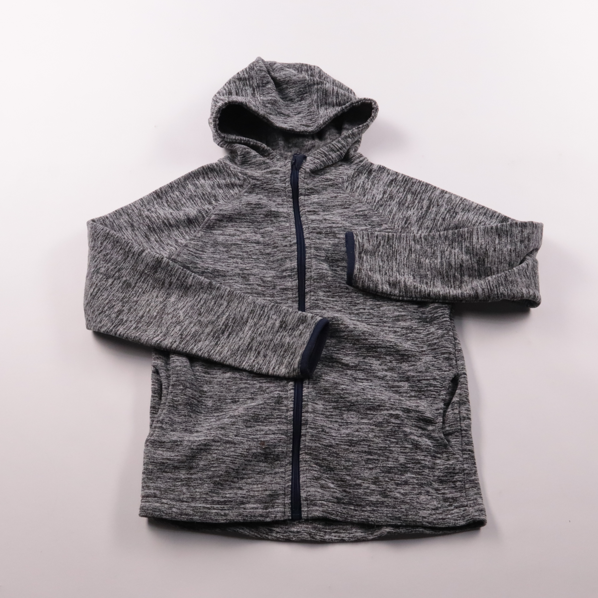 Толстовка Y.F.K. для мальчика из мягкого флиса, серого меланжевого цвета, на молнии и с капюшоном. Подойдёт для школы, прогулок и как второй слой в прохладную погоду. Лёгкая и быстро сохнет благодаря полиэстеру.