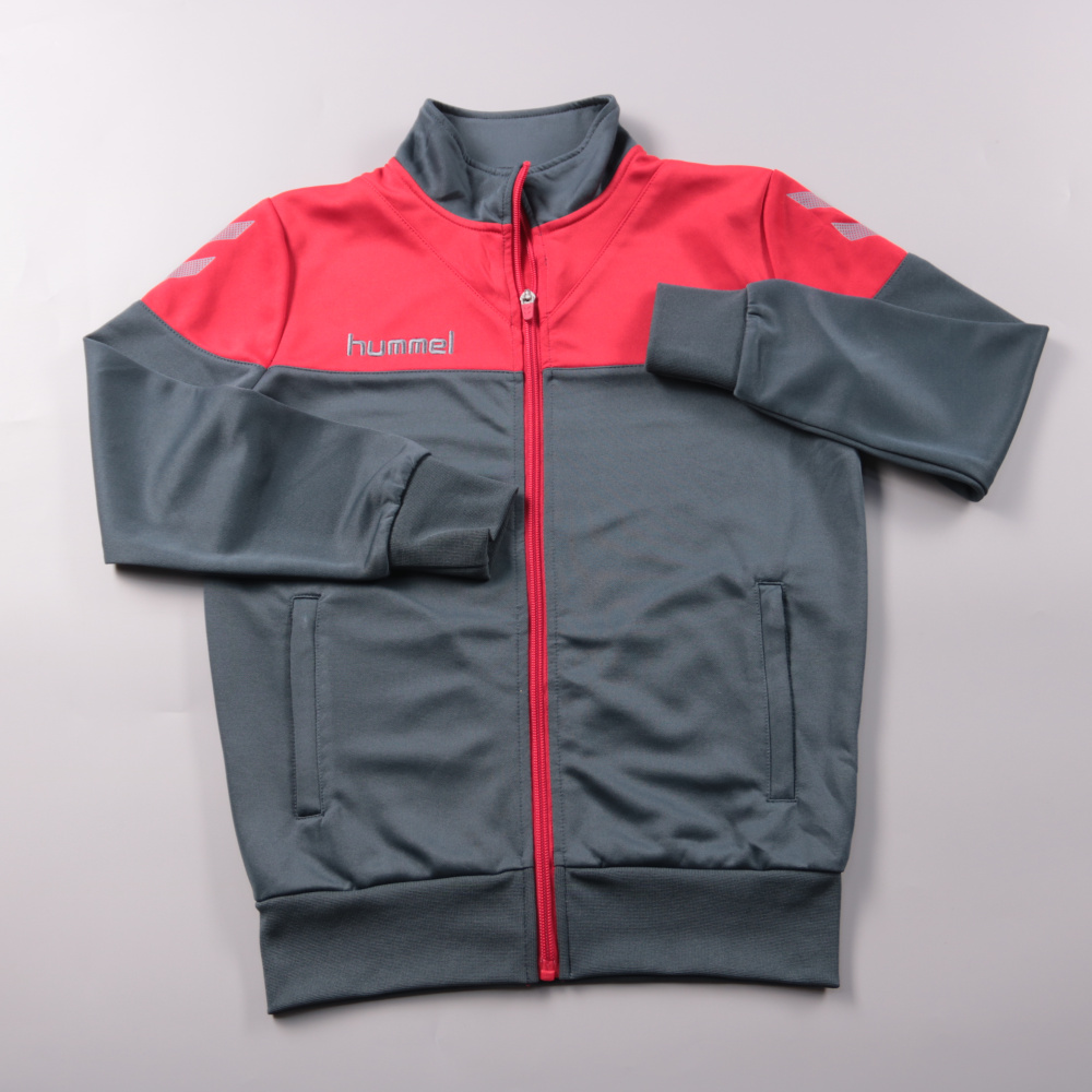 Толстовка Hummel на молнии, серого цвета с красными вставками и воротником-стойкой. Подойдёт для школы, прогулок и спорта в прохладную погоду, есть удобные карманы по бокам. Практичный полиэстер быстро сохнет и не требует сложного ухода.