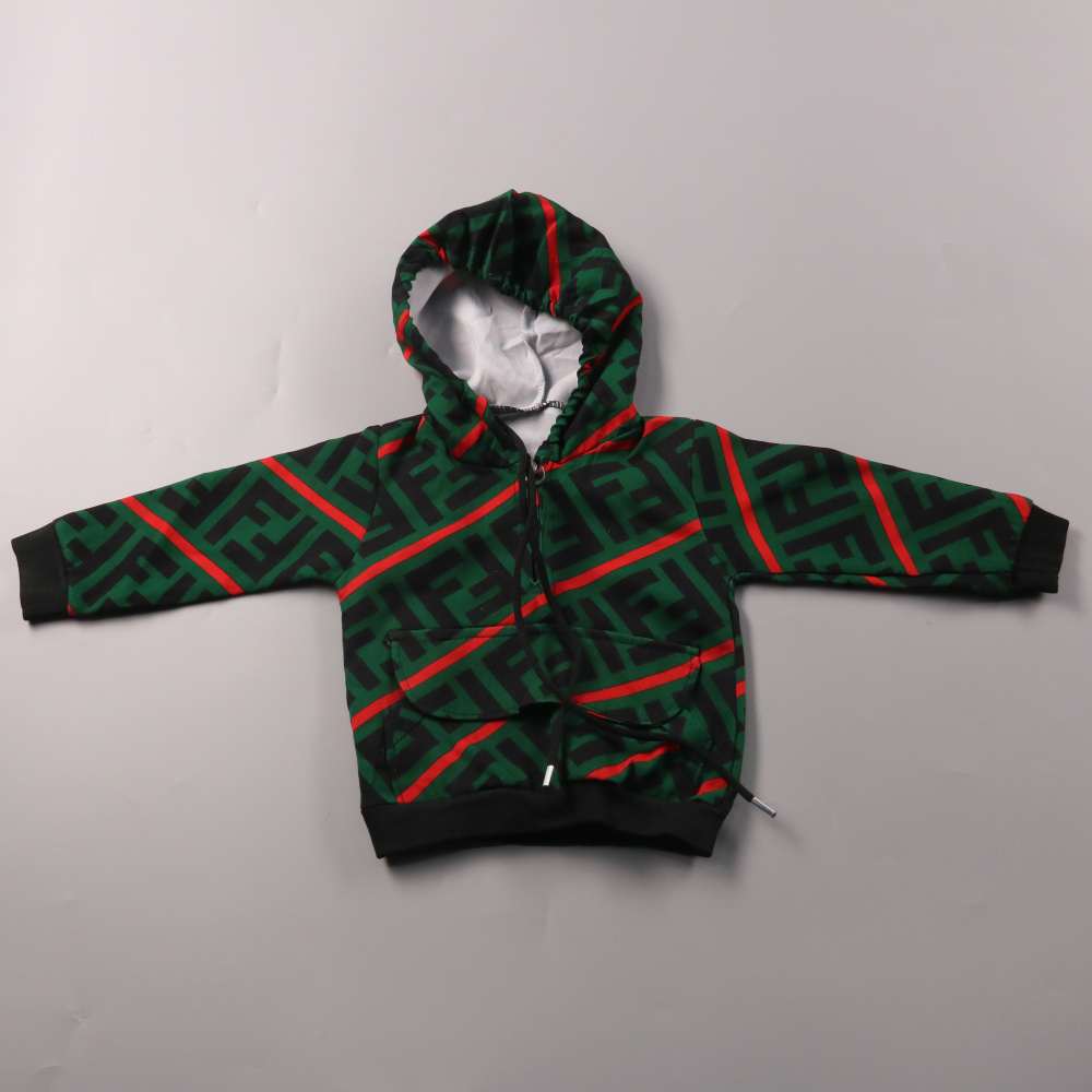 Детская толстовка с капюшоном и карманом-кенгуру, с принтом в зелёно-чёрных тонах и красными полосами. Подойдёт для прогулок и повседневной носки в прохладную погоду. Мягкая внутренняя сторона и манжеты помогают сохранять тепло и комфорт.