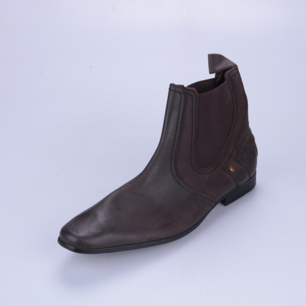 Мужские кожаные ботинки челси с эластичными вставками по бокам и узким носком. Подойдут для города и офиса в прохладную погоду, легко сочетаются с джинсами и брюками. Удобно быстро надевать и снимать за счёт резинок без шнуровки.