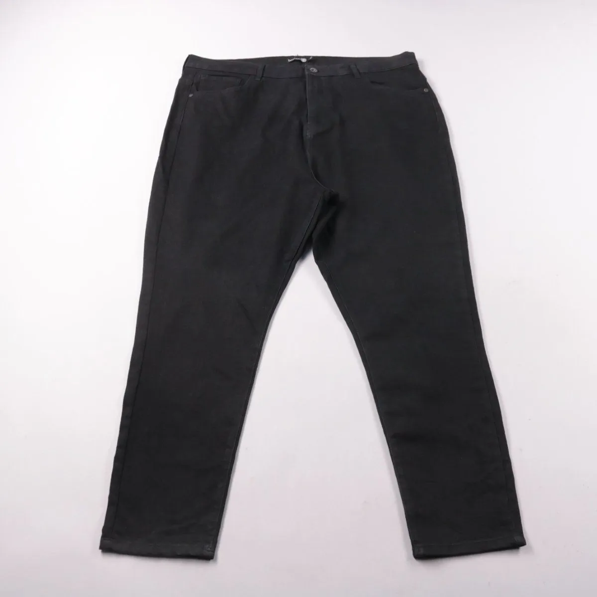 Мужские брюки Boohoo чёрного цвета, прямой/слегка зауженный крой, застёжка на молнию и пуговицу. Подойдут для повседневной носки и более собранных образов. Смесовая ткань с эластаном чуть тянется и комфортна в движении.