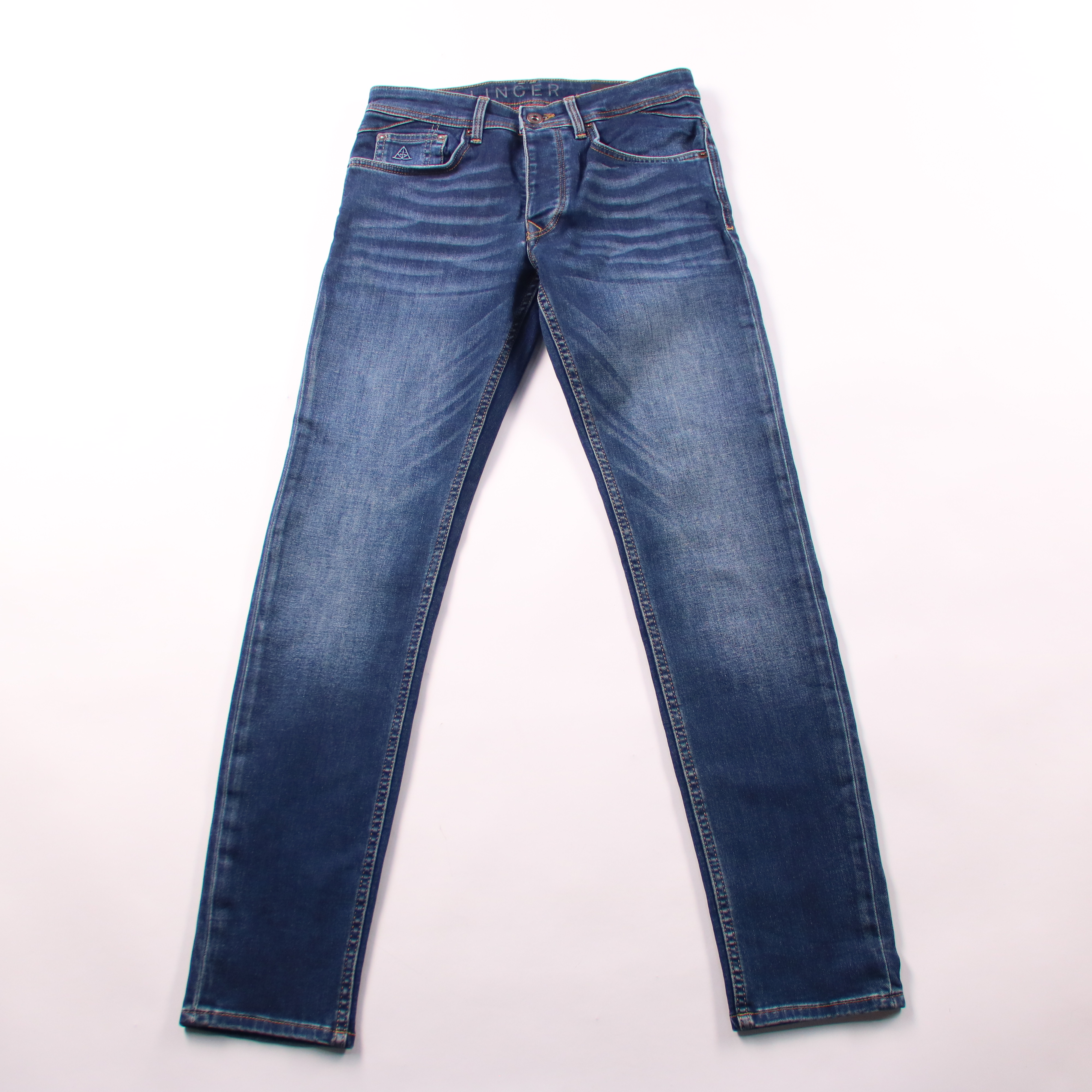Мужские джинсы Hallinger Harper Slim в синем дениме с лёгким эффектом потертости. Подойдут для повседневной носки и casual-образов с кедами или ботинками. За счёт небольшого добавления эластана ткань чуть тянется и комфортнее сидит в движении.