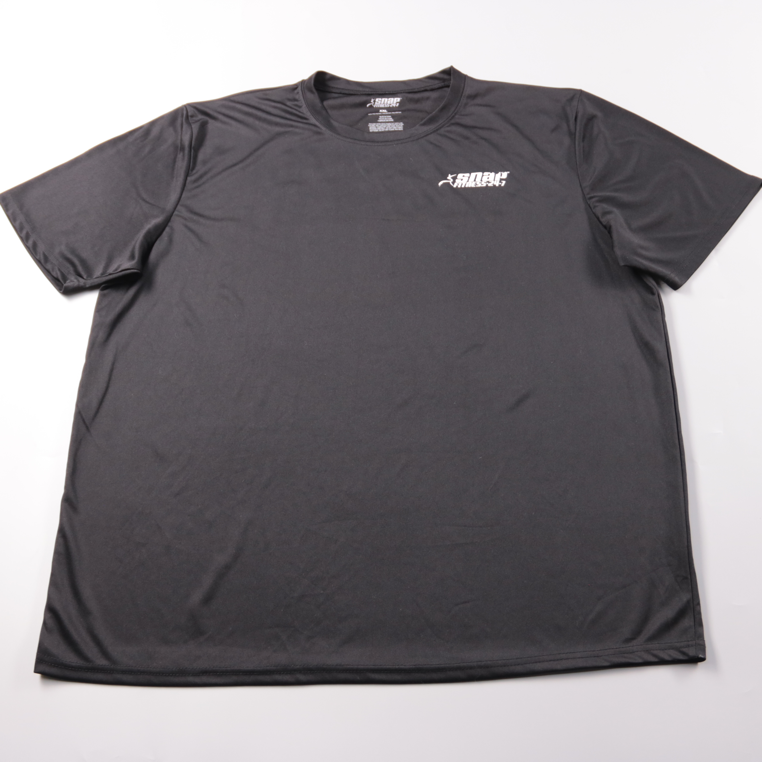 Мужская спортивная футболка Snap Fitness 24-7 чёрного цвета с небольшим логотипом на груди. Подойдёт для тренировок в зале и активного отдыха, лёгкая синтетическая ткань быстро сохнет и не стесняет движения.