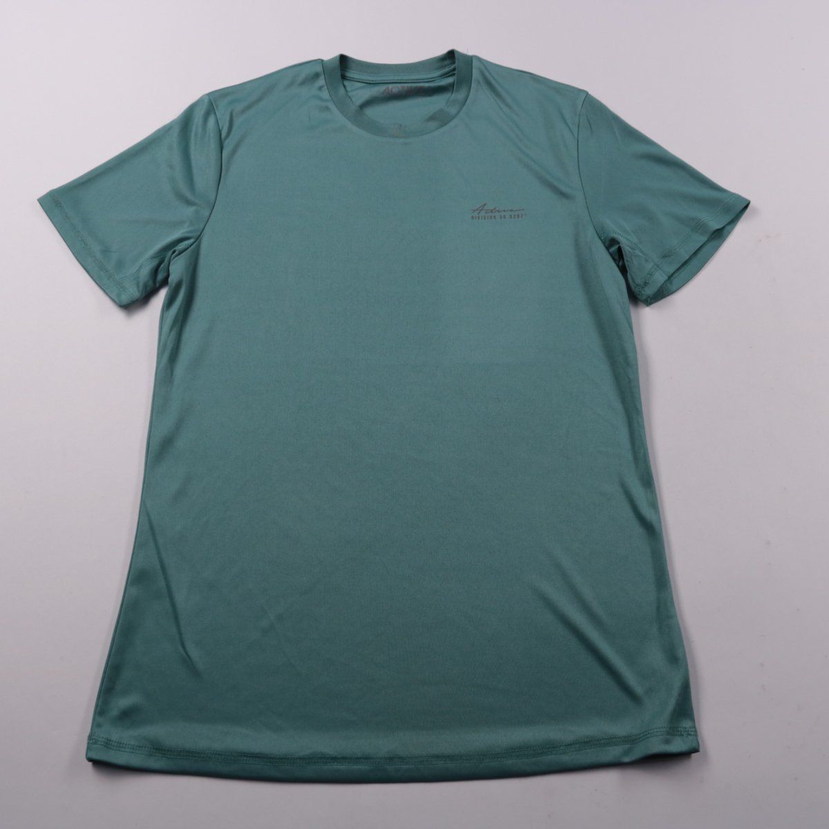Мужская футболка George в цвете jade (зелёно-бирюзовый), с коротким рукавом и круглым вырезом. Лаконичный принт на груди делает её удобной для повседневной носки и лёгких тренировок. Практичный плюс — материал из полиэстера быстро сохнет и почти не мнётся.