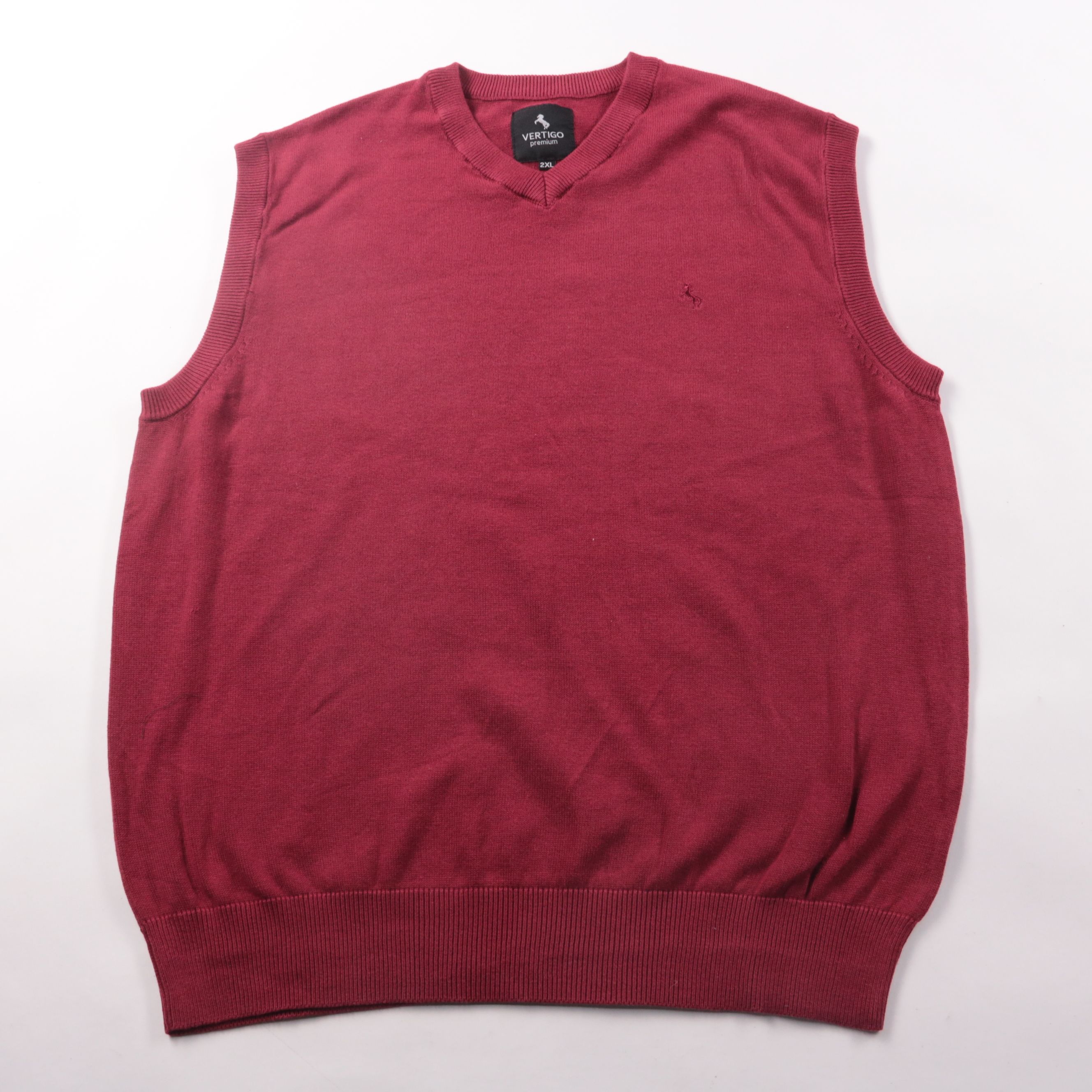Мужской трикотажный жилет Vertigo Premium бордового цвета с V-образным вырезом и эластичной резинкой по низу. Подойдёт для офиса и повседневной носки в прохладную погоду поверх рубашки или лонгслива. Смесь хлопка с нейлоном меньше мнётся и дольше держи...