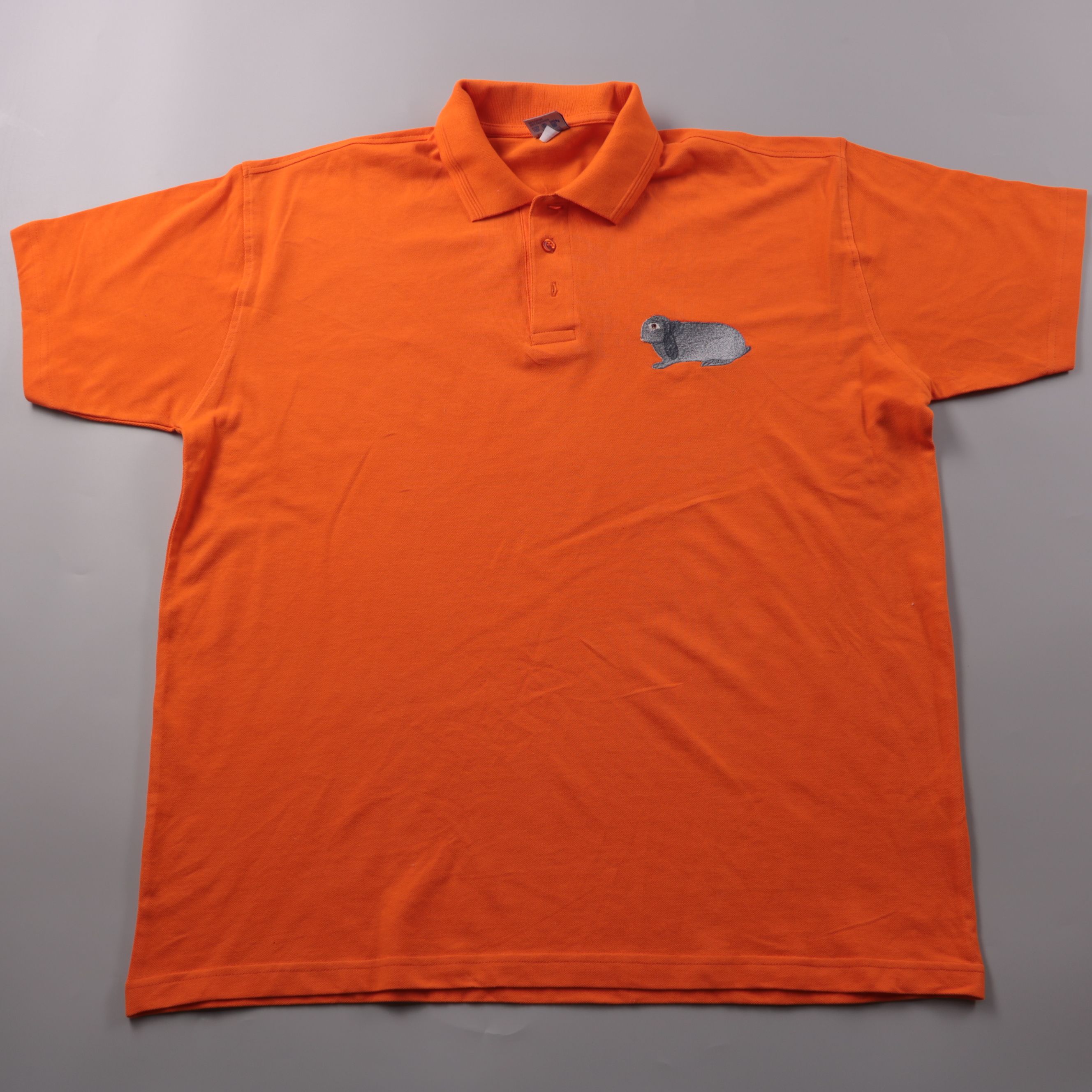 Мужское поло ZerateX Premium Sport ярко-оранжевого цвета, короткий рукав, с вышивкой кролика на груди. Подойдёт для повседневной носки летом и для нестрогого офиса. Хлопковая ткань хорошо дышит и комфортна в жару.