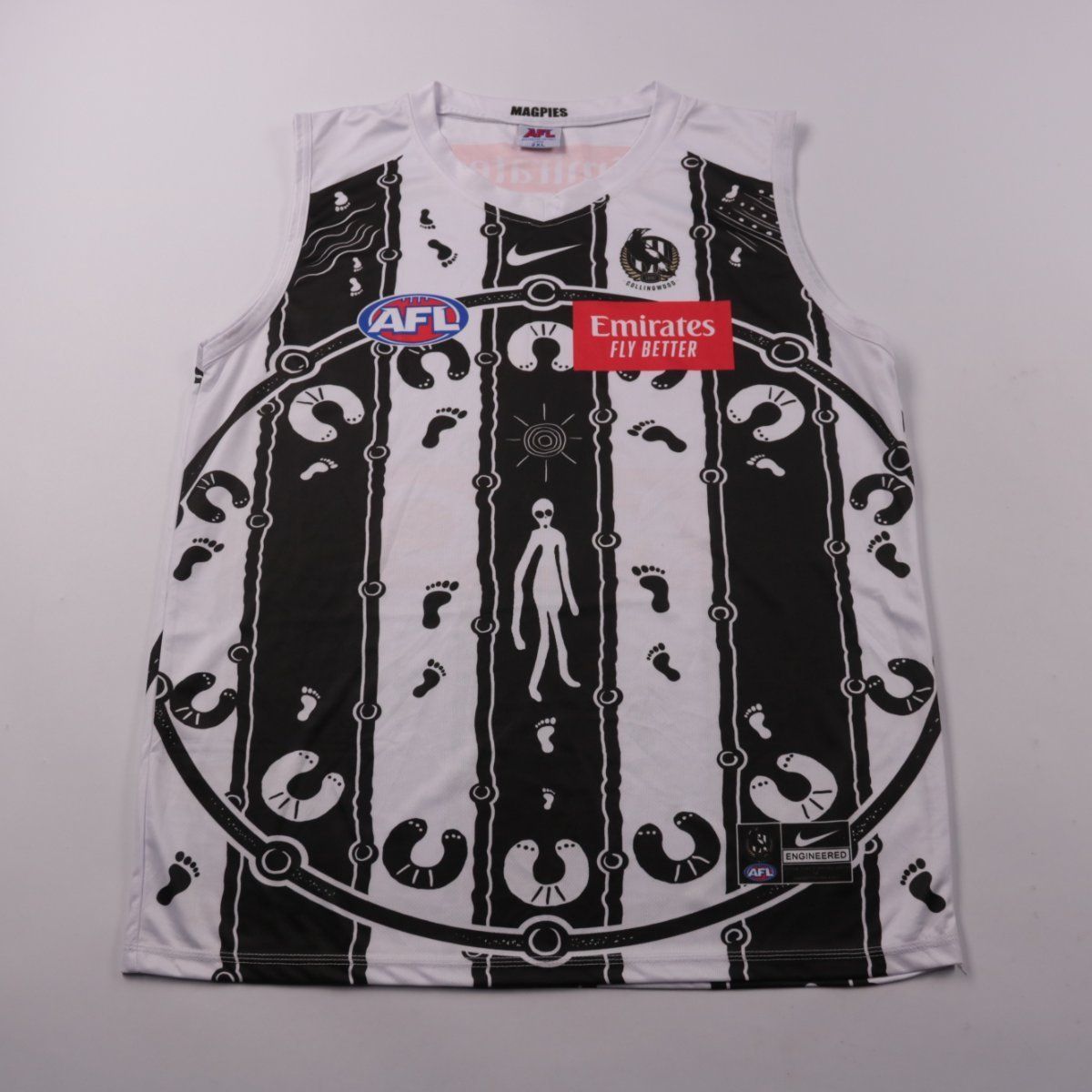 Мужская спортивная майка Nike для AFL (Magpies) с ярким чёрно-белым принтом и логотипами спонсоров. Подойдёт для тренировок, игры и как фанатская форма в тёплую погоду. Лёгкая синтетическая ткань быстро сохнет и комфортна в движении.