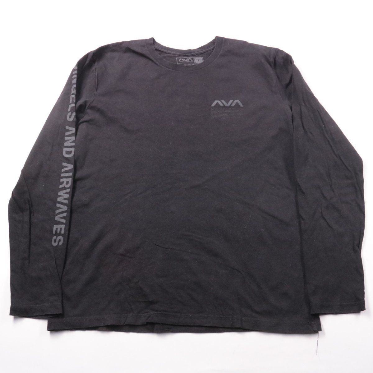 Мужская футболка с длинным рукавом AVA (Angels & Airwaves) в чёрном цвете, с логотипом на груди и принтом на рукаве. Подойдёт для повседневной носки и как слой под куртку в прохладную погоду. Практична тем, что тёмная ткань менее маркая.