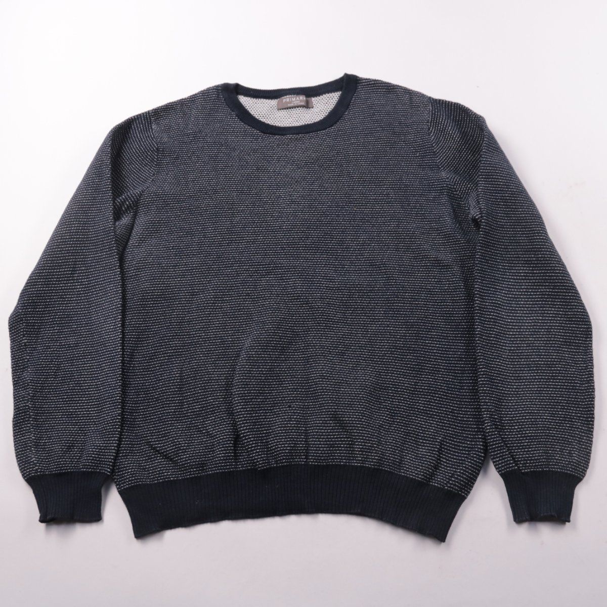 Мужской джемпер Primark с круглым вырезом, тёмно-синий меланж. Подойдёт для повседневной носки и как слой под куртку в прохладную погоду. Хлопковая вязка комфортная и хорошо дышит.