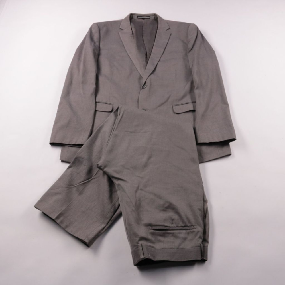 Мужской костюм LIV Collection в сером цвете: пиджак на 2 пуговицы и брюки классического кроя. Подойдёт для офиса, деловых встреч и торжественных мероприятий. Практичный синтетический состав меньше мнётся и проще в уходе.