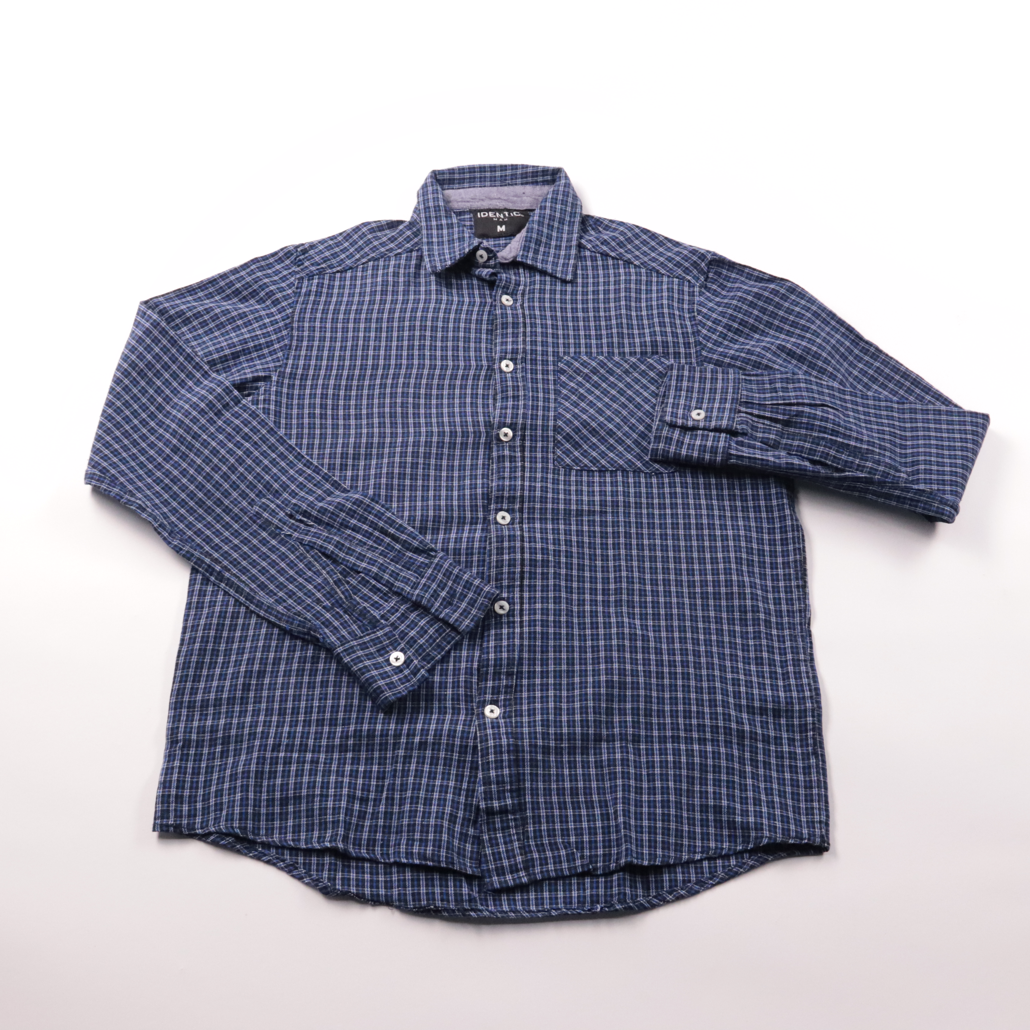 Мужская рубашка Identic в синюю клетку, длинный рукав, с нагрудным карманом и застёжкой на пуговицы. Подойдёт для повседневной носки и офиса в стиле casual, хорошо сочетается с джинсами и чиносами. Практичная ткань легко носится и не слишком маркая.