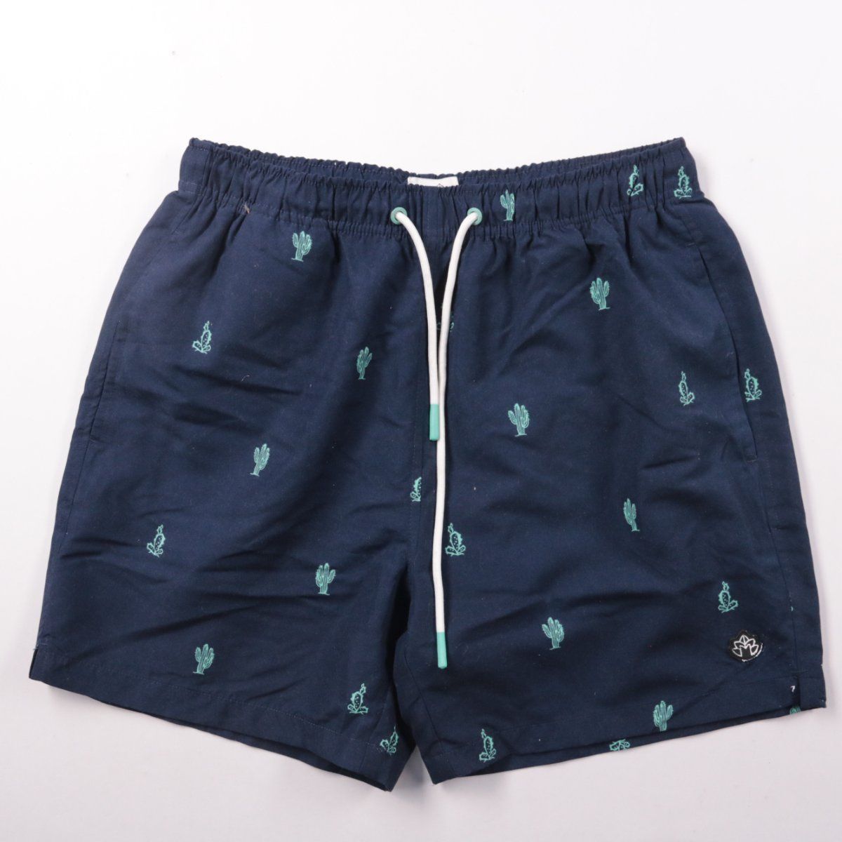 Мужские шорты Lost Minds тёмно-синего цвета с принтом кактусов и эластичным поясом на шнурке. Подойдут для отдыха, пляжа и повседневных летних прогулок. Практичны за счёт лёгкой ткани и удобной посадки на резинке.