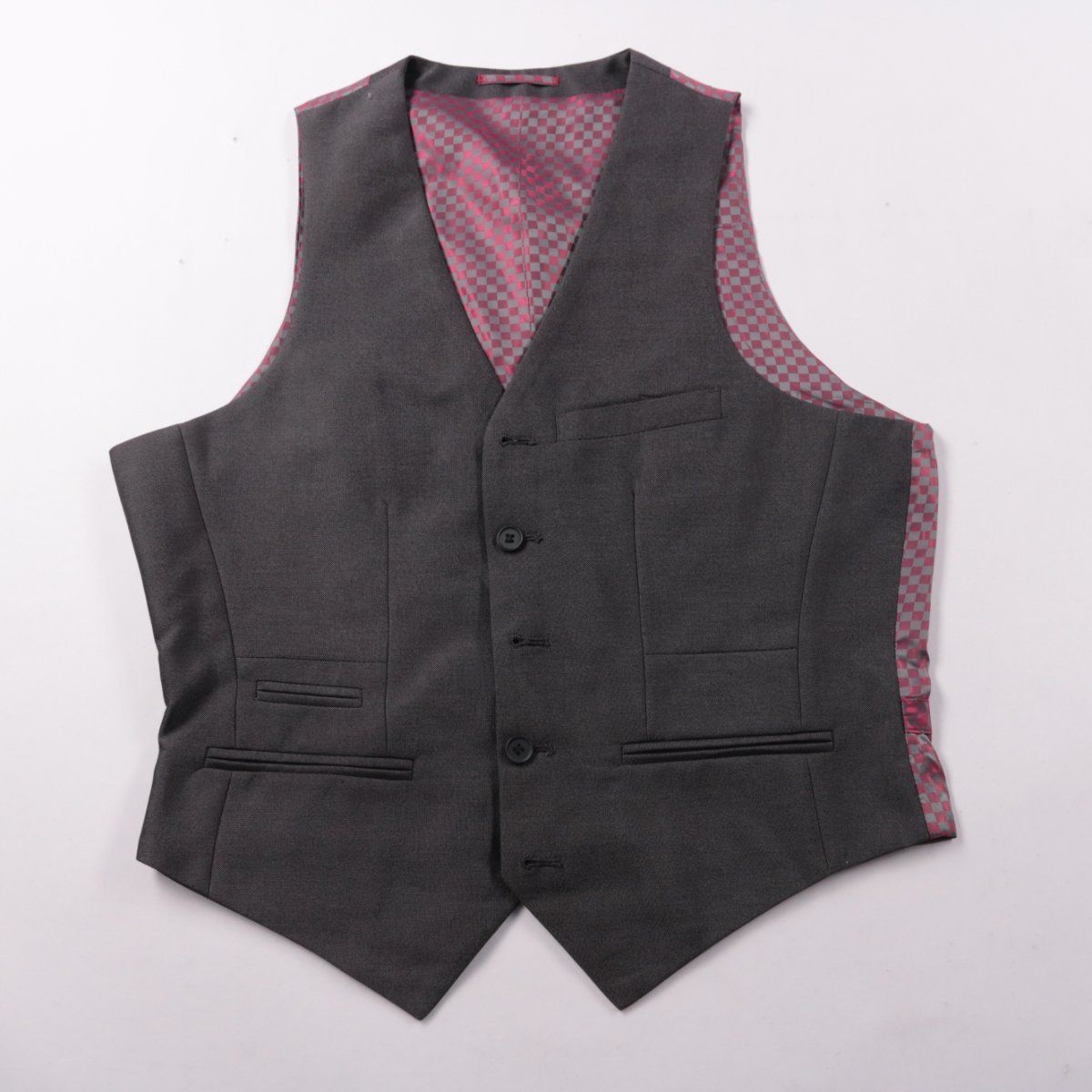 Мужской классический жилет Fellini Tailored в сером цвете с подкладкой в клетку. Подойдёт для деловых образов и мероприятий, хорошо сочетается с рубашкой и костюмом. На спинке есть регулировка по талии, что помогает точнее посадить жилет по фигуре.