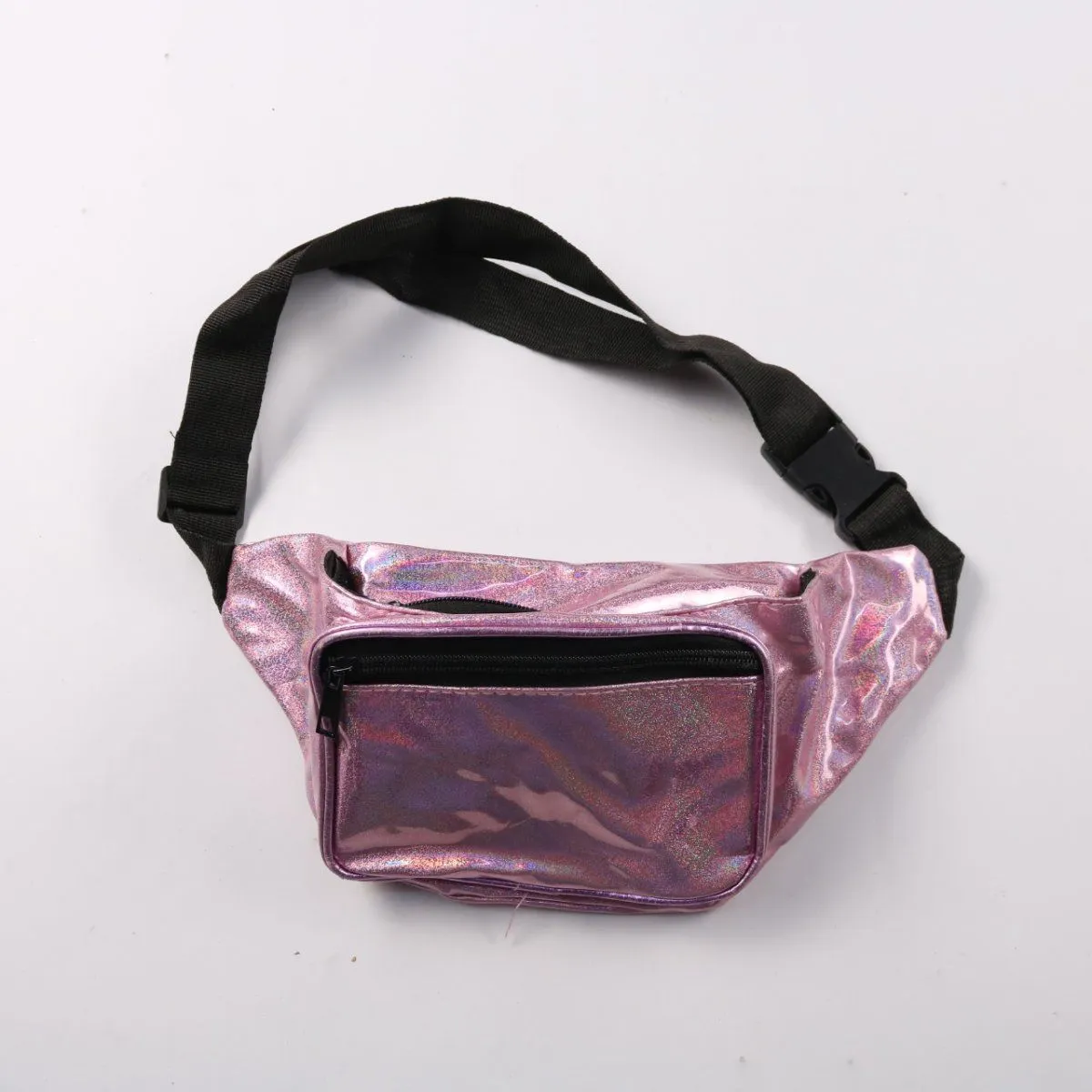 Поясная сумка из искусственной кожи с голографическим эффектом и регулируемым ремнём на фастексе. Подойдёт для прогулок и поездок, чтобы держать телефон и мелочи под рукой. Спереди есть карман на молнии — удобно быстро доставать нужное.