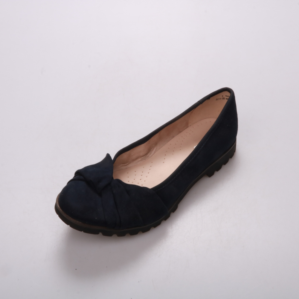 Балетки Graceland тёмно-синего цвета с мягким узлом на мысе и удобной низкой подошвой. Подойдут для повседневной носки в городе и на работу, легко сочетаются с платьями и брюками. Практичный плюс — рельефная подошва меньше скользит на гладких покрытиях.