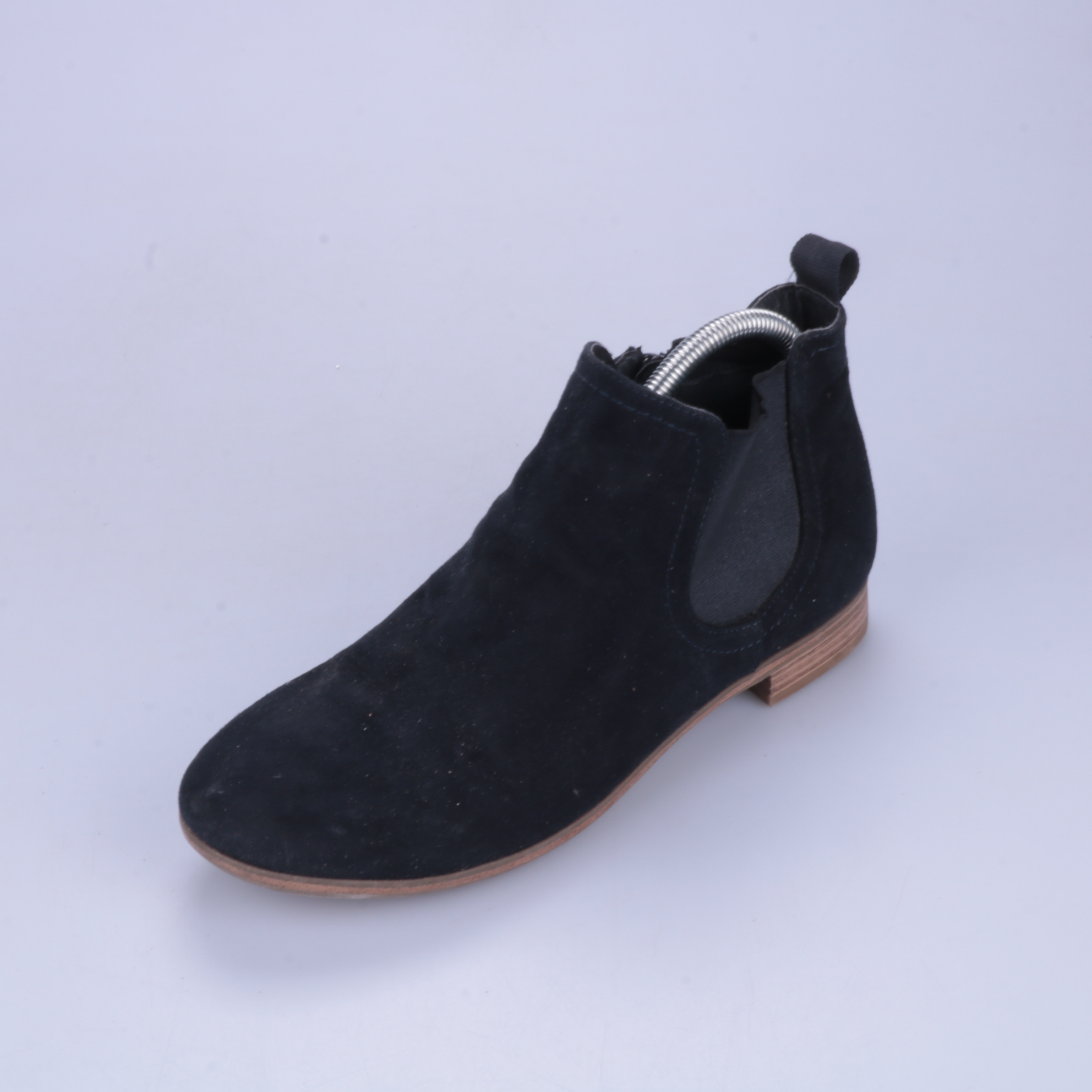 Ботильоны Graceland из чёрного материала под замшу, с боковой молнией и эластичной вставкой. Подойдут на каждый день в демисезон, хорошо смотрятся с джинсами и платьями. Низкий устойчивый каблук делает их удобными для длительной ходьбы.