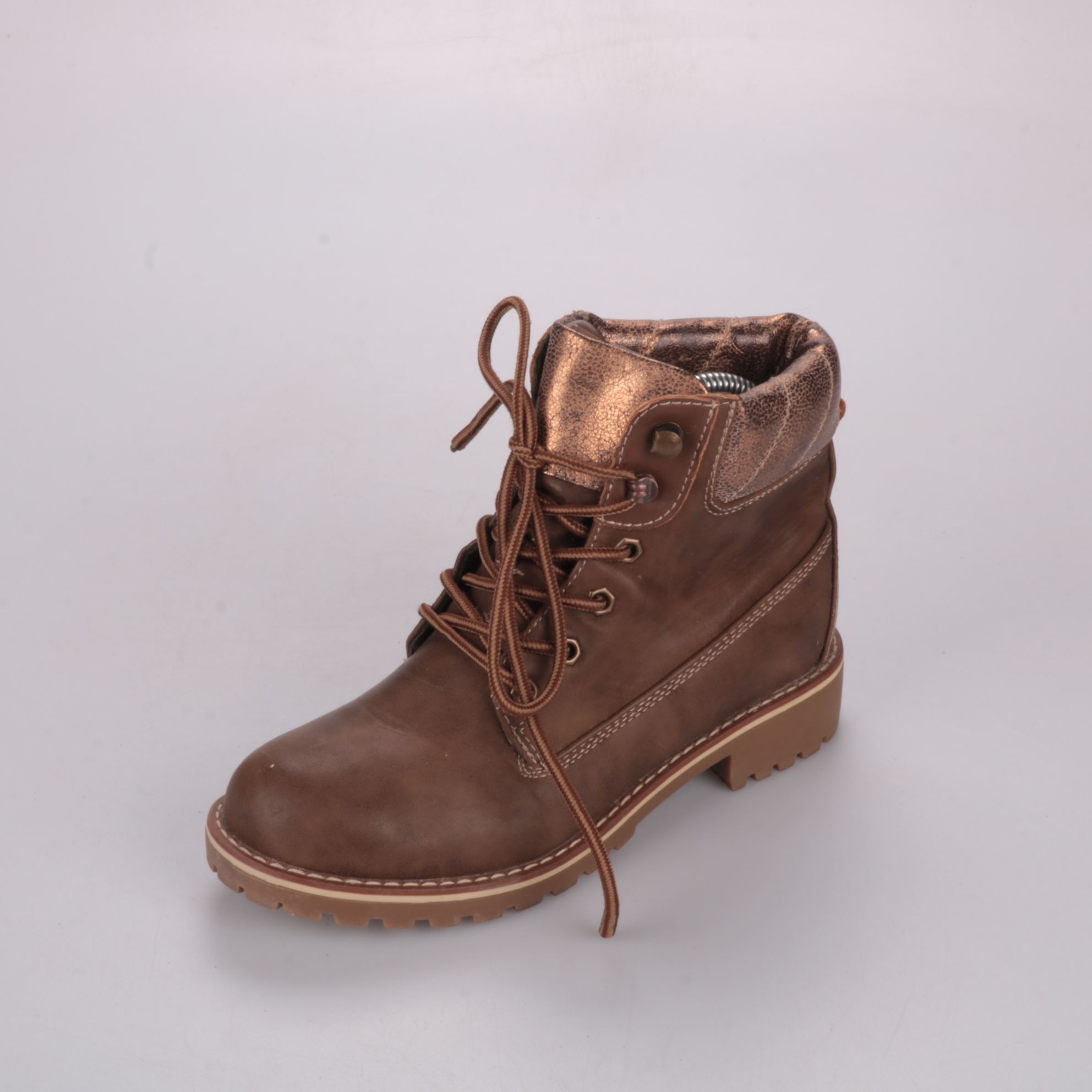 Женские ботинки в коричневом цвете на шнуровке, с мягким утеплённым воротником и рельефной подошвой. Подойдут для повседневных прогулок в прохладную погоду и в межсезонье. Толстая протекторная подошва даёт устойчивость и хорошее сцепление на мокром асф...
