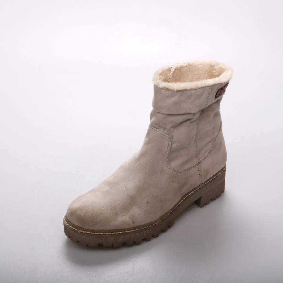 Женские зимние ботинки s.Oliver из светлой замши с тёплой меховой подкладкой и боковой молнией. Подойдут на каждый день в холодную погоду, хорошо сочетаются с джинсами и парками. Рифлёная подошва даёт уверенное сцепление и меньше скользит.