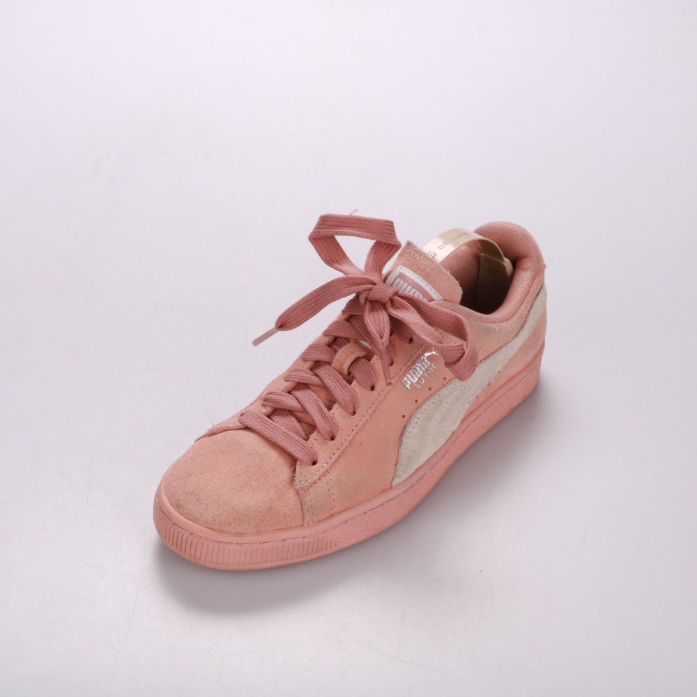 Женские кроссовки Puma в розовом цвете с замшевым верхом и фирменной боковой полосой. Подойдут для повседневной носки и прогулок в городе в тёплый сезон и в помещении. Резиновая подошва с цепким протектором помогает уверенно держаться на разных покрытиях.