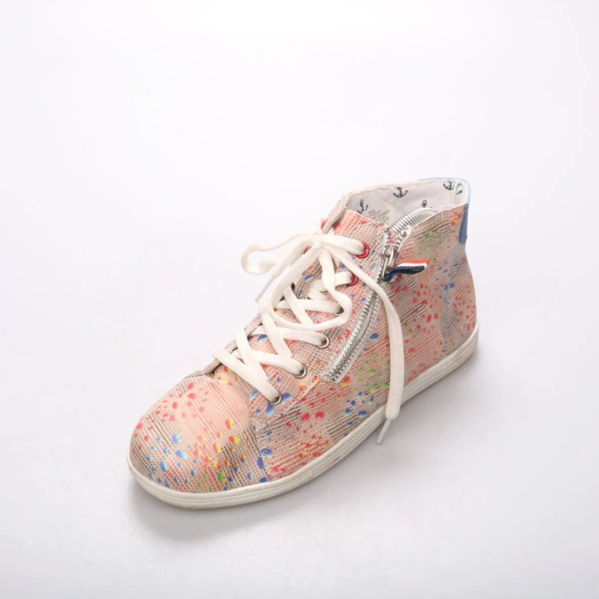 Женские высокие кеды INSEL HAUPTSTADT с ярким принтом и боковой молнией для удобного надевания. Подойдут для прогулок и повседневных образов в тёплый сезон. Резиновая подошва даёт хорошее сцепление и легко очищается.