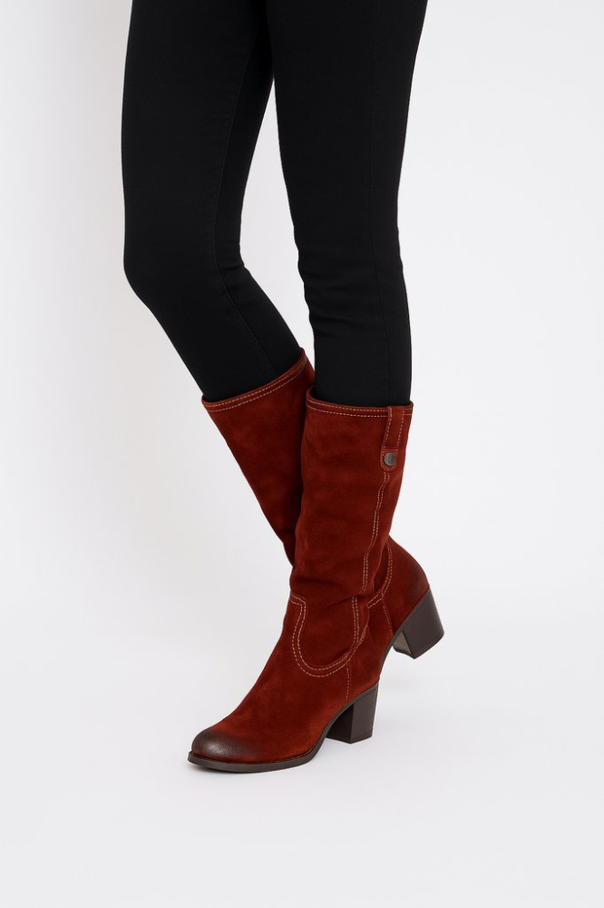 Женские сапоги Tamaris из коричневой замши на устойчивом каблуке. Подойдут на каждый день в демисезон, хорошо смотрятся с джинсами и платьями. Удобно надевать за счёт боковой молнии.