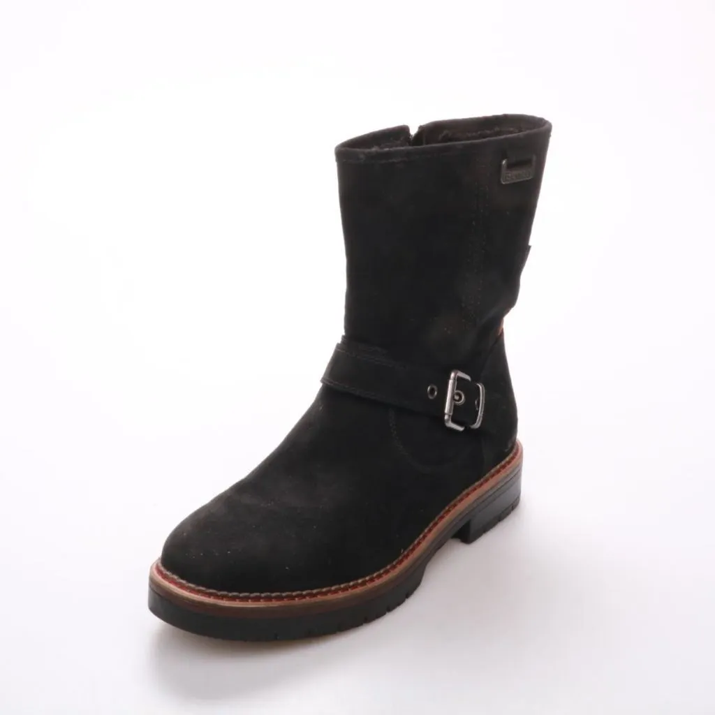 Сапоги Bench из чёрной замши с боковой молнией и ремешком с пряжкой. Подойдут на каждый день в демисезон для города и поездок. Рифлёная резиновая подошва даёт хорошее сцепление и устойчивость.