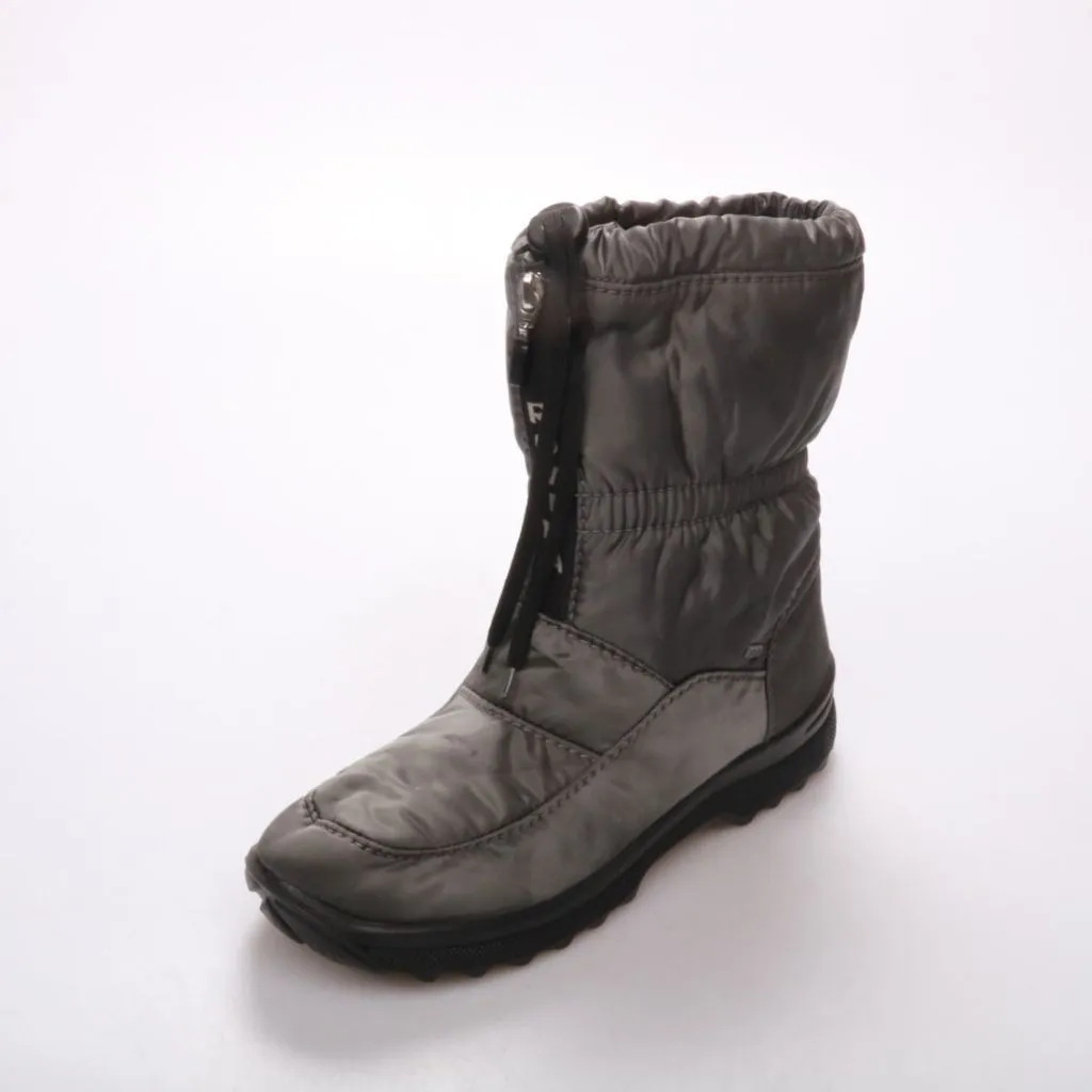 Зимние дутики Romika серого цвета из синтетического материала с утяжкой по верху голенища. Подойдут для повседневной носки в холодную погоду и слякоть. Рельефная подошва даёт хорошее сцепление и меньше скользит.