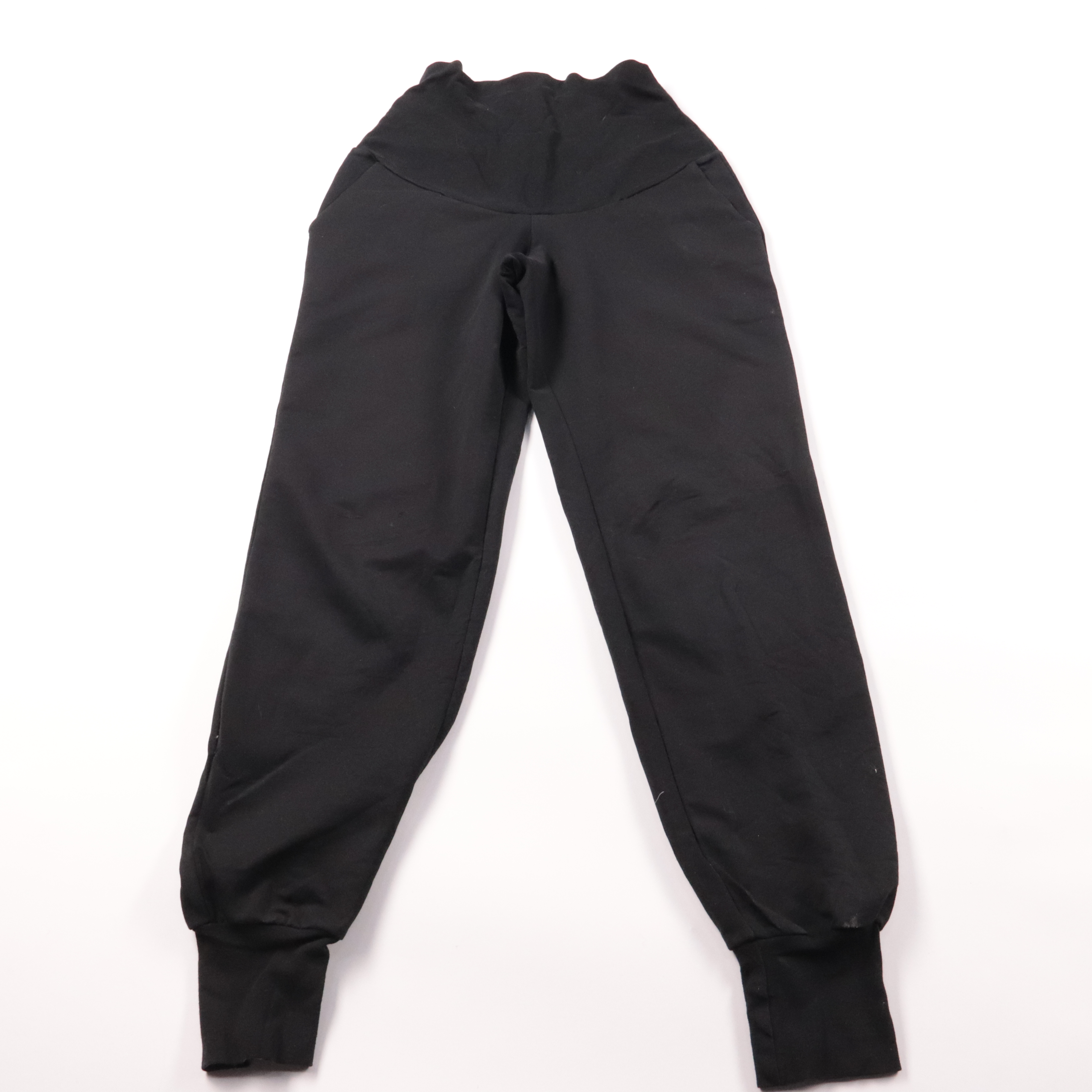 Черные женские брюки-джоггеры с высокой посадкой и манжетами по низу. Подойдут для прогулок, дома и повседневных образов в стиле casual. Плотная эластичная ткань хорошо тянется и не сковывает движения.